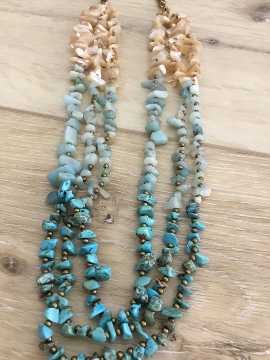 Turquoise, pearl shell and stone necklace