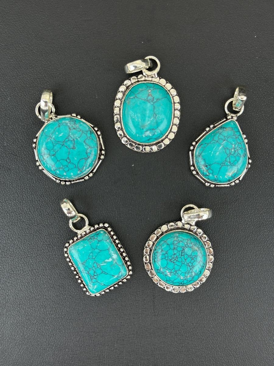 1. Turquoise Pendant 925 Sterling Silver Plated Handmade Gemstone -No chain_x000D_