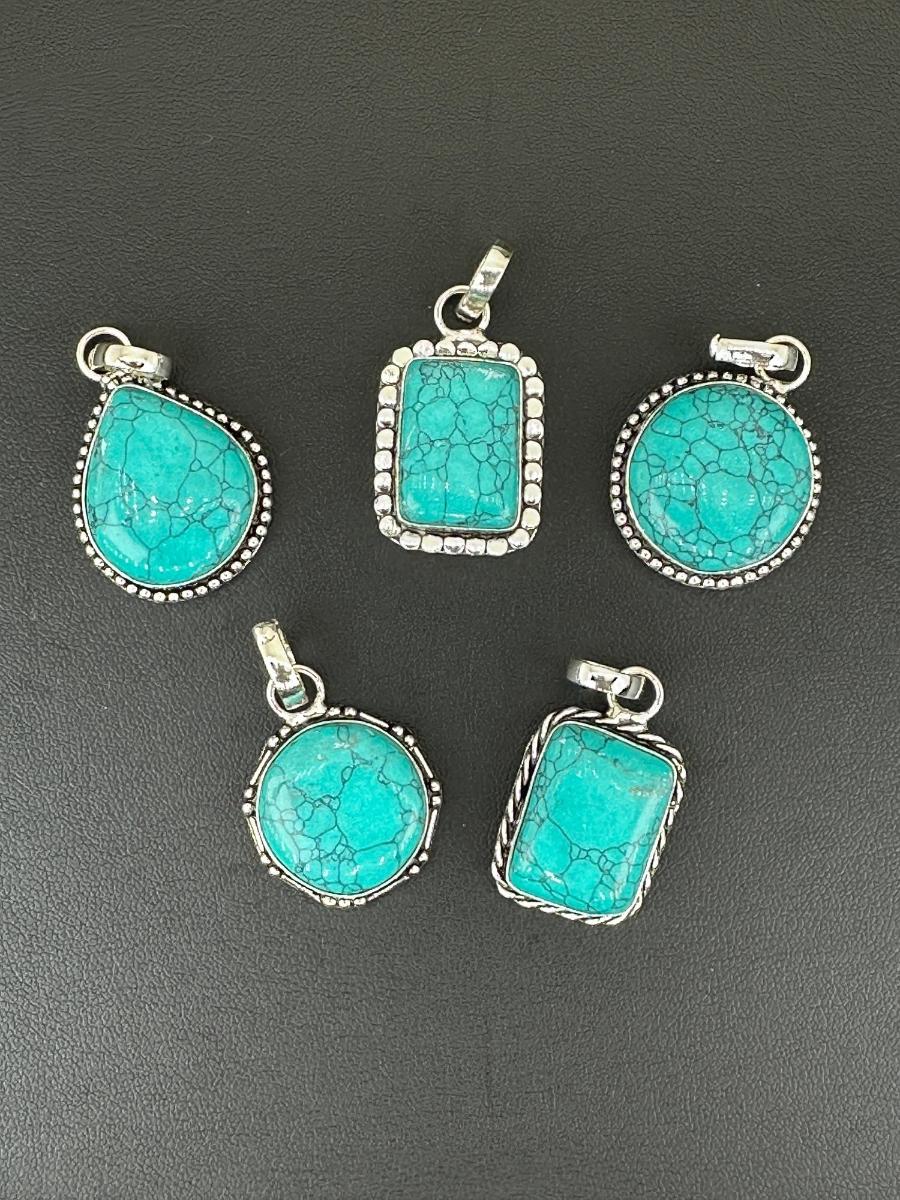 1. Turquoise Pendant Silver Plated Handmade Gemstone -No chain