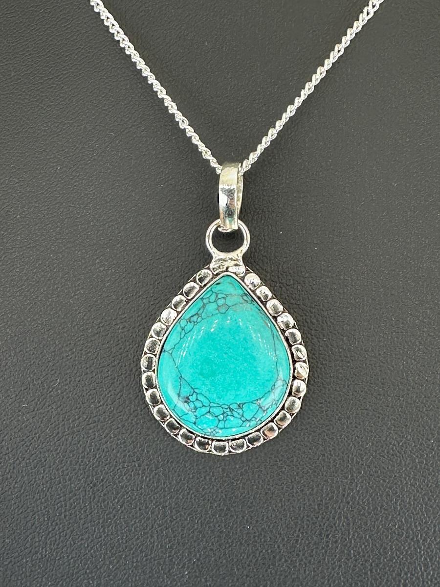 Turquoise Pendant Silver Plated Handmade Gemstone