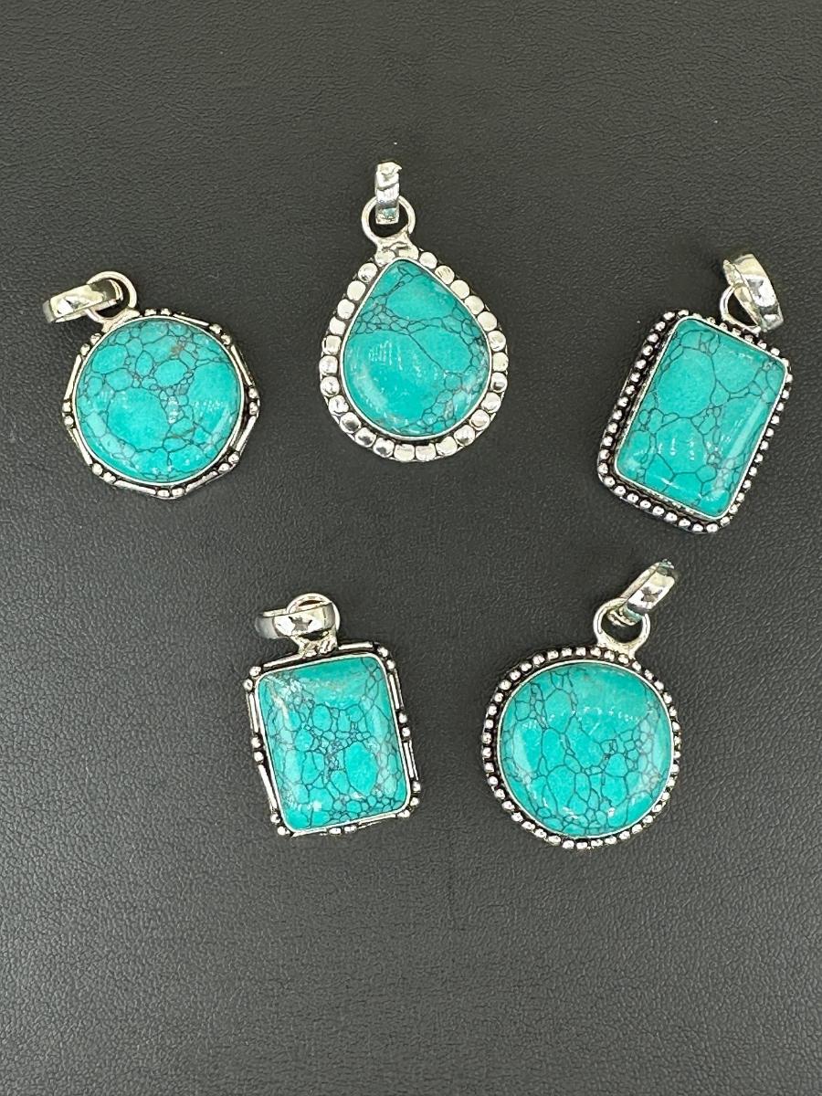 1. Turquoise Pendant Silver Plated Handmade Gemstone -No chain