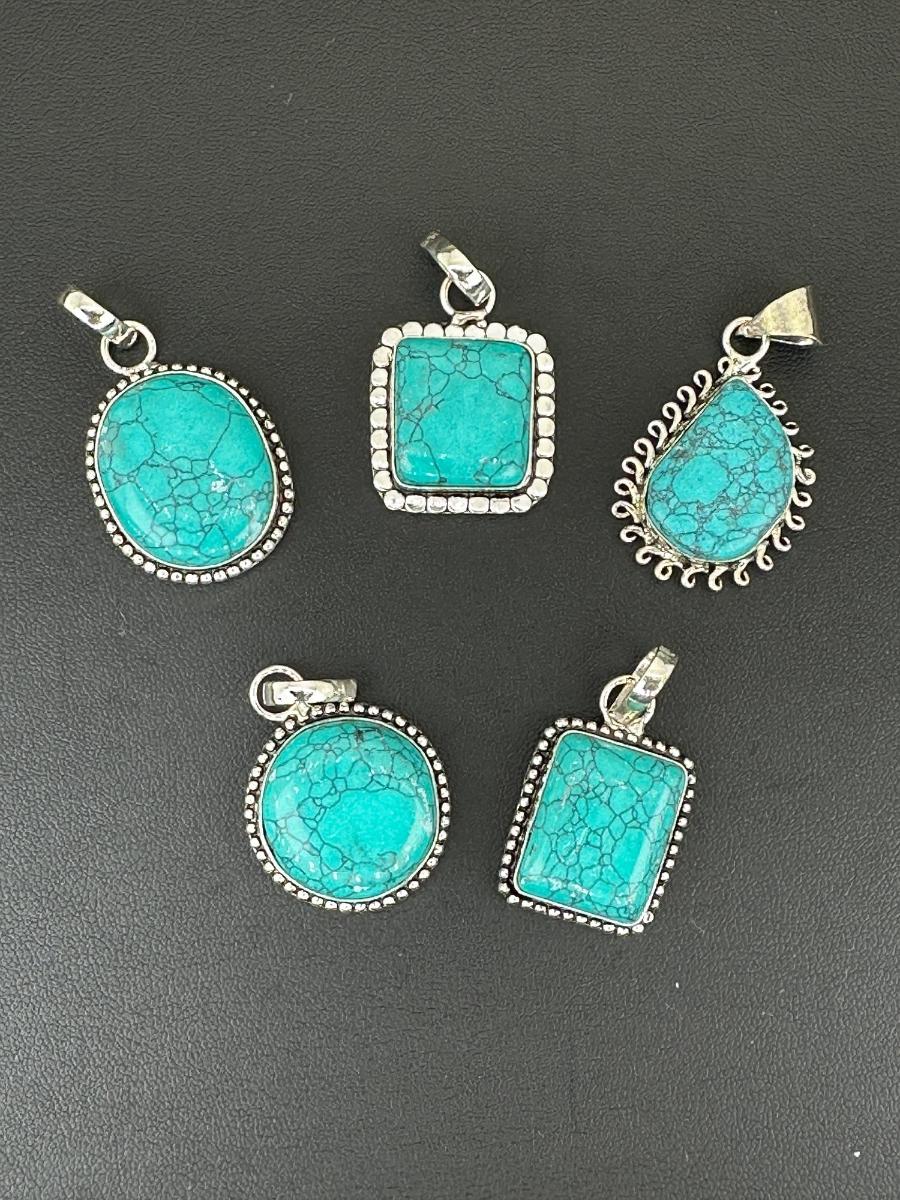 1. Turquoise Pendant Silver Plated Handmade Gemstone -No chain- Alloy Metal Silver Plated