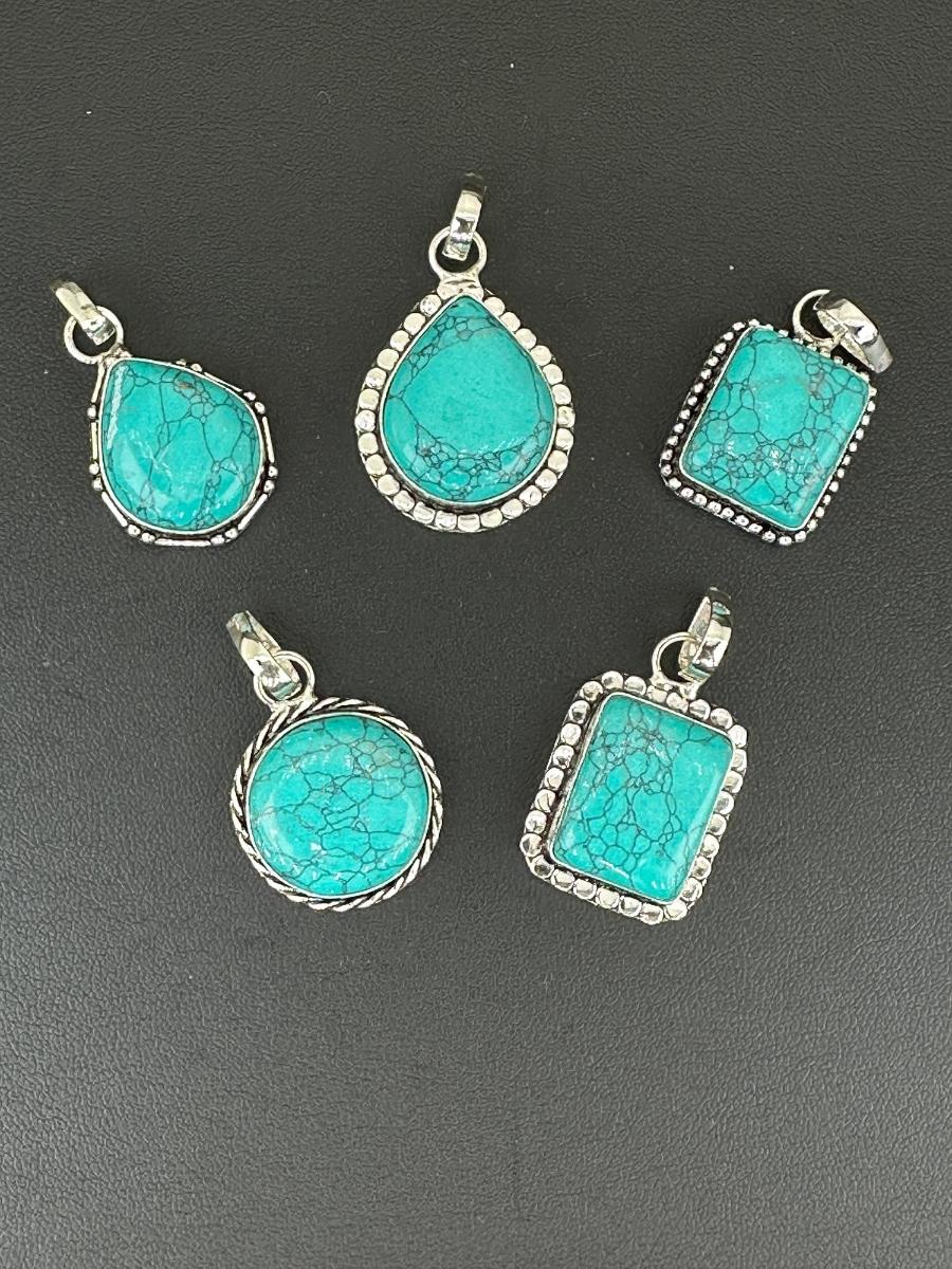 1. Turquoise Pendant Silver Plated Handmade Gemstone -No chain-Alloy Metal Silver Plated