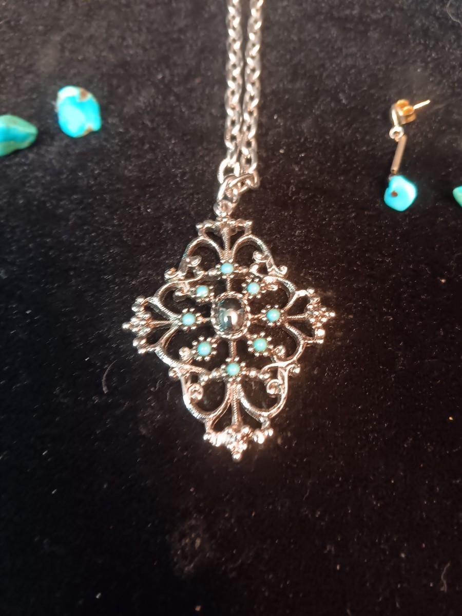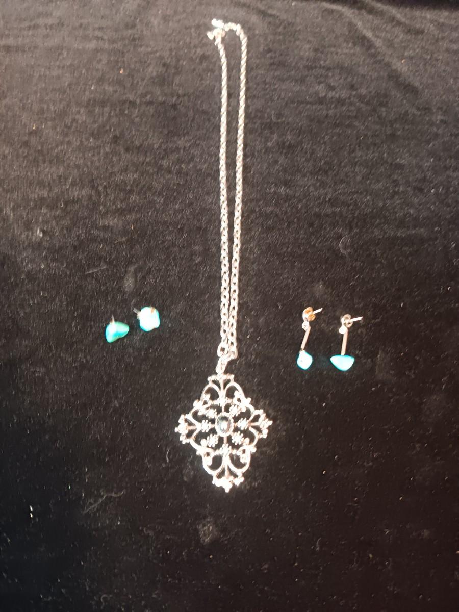 TURQUOISE PIERCED EARRINGS AND PENDANT NECKLACE