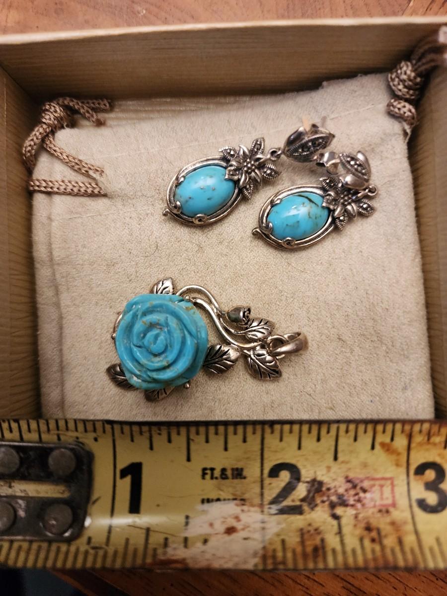 Turquoise rose pendant and earrings set
