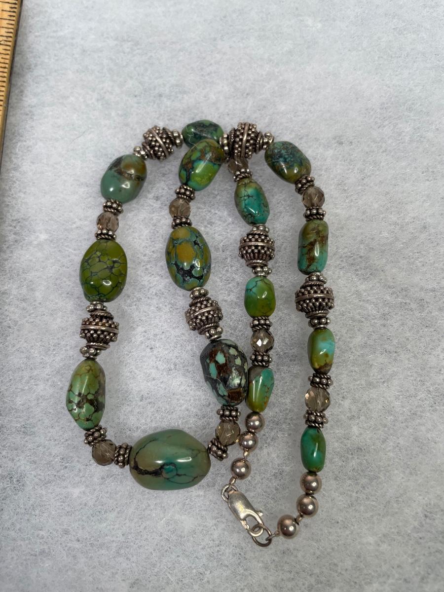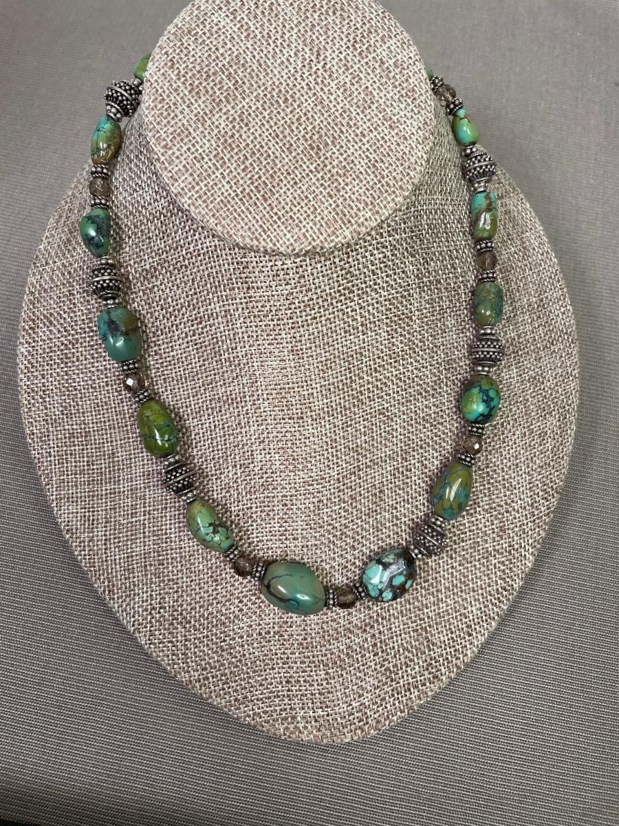 Turquoise, Smoky Quartz and Sterling beaded Necklace