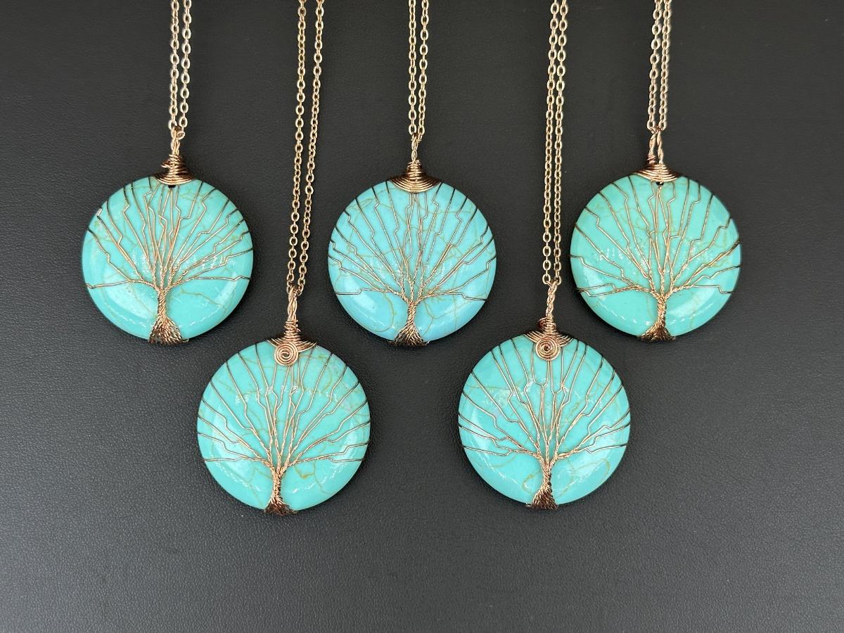 1. Turquoise Synthetic Tree Of Life Necklace Lot_x000D_