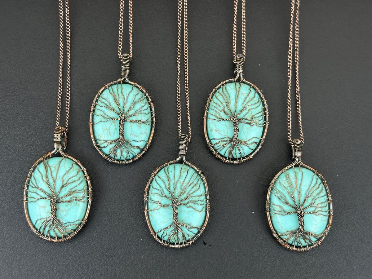 Turquoise Synthetic Tree Of Life Necklace Lot