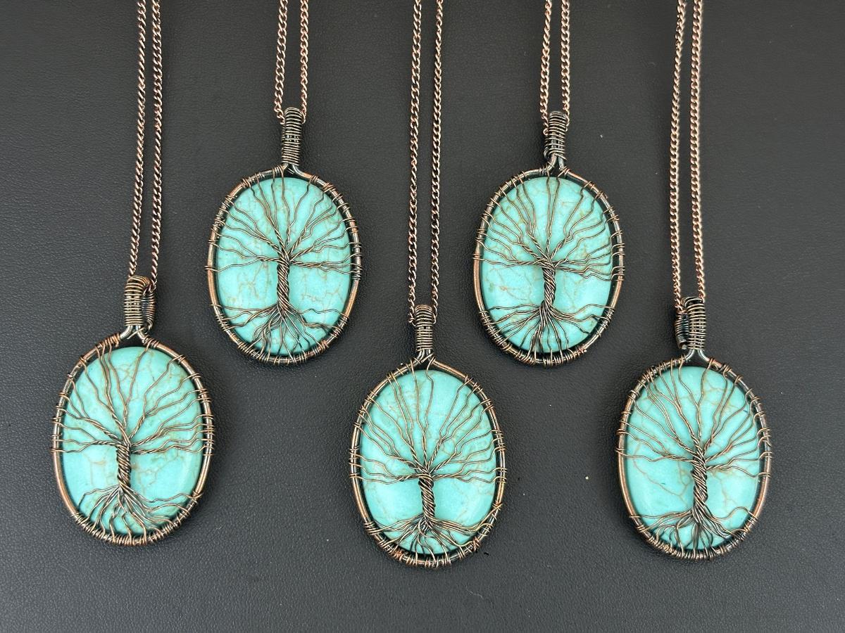 Turquoise Synthetic Tree Of Life Necklace Lot
