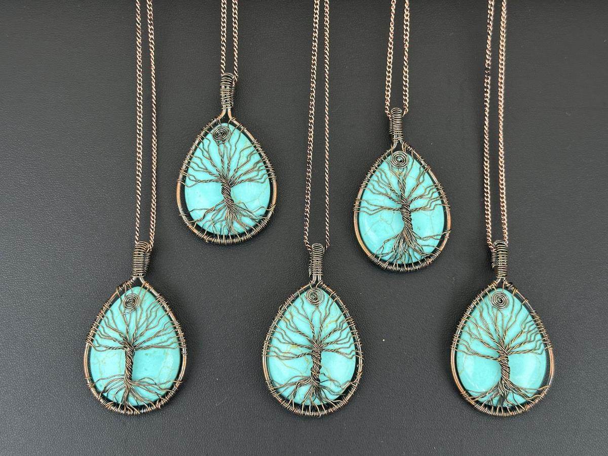 Turquoise Synthetic Tree Of Life Necklace Lot