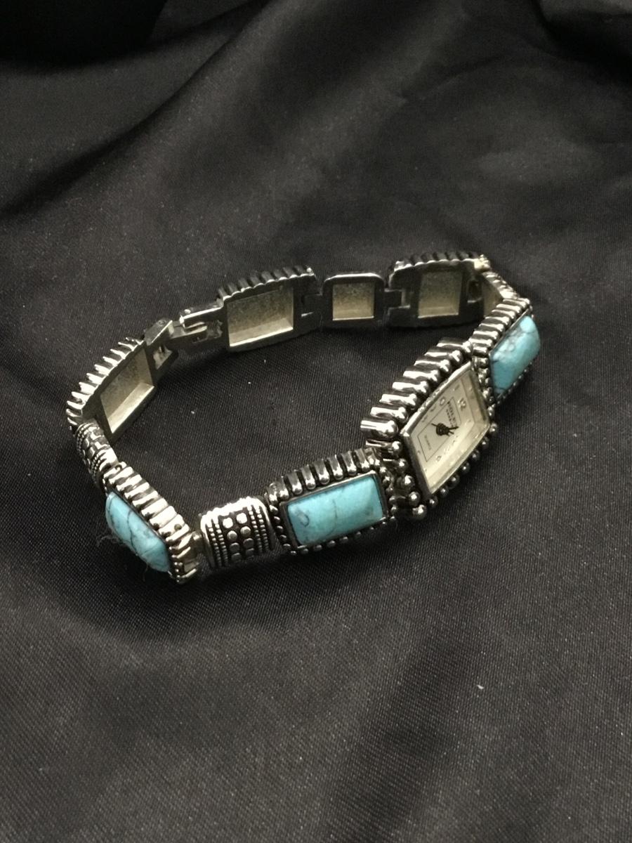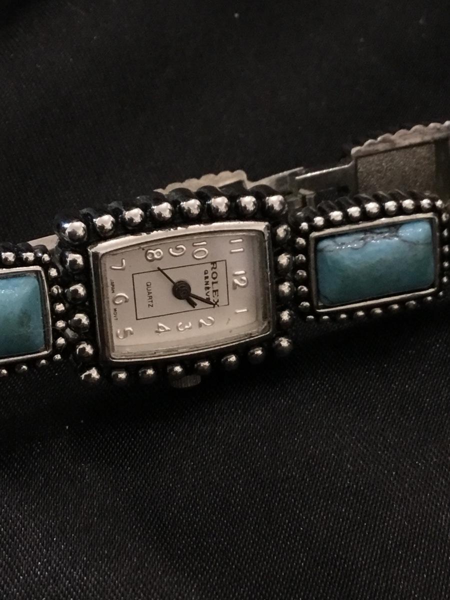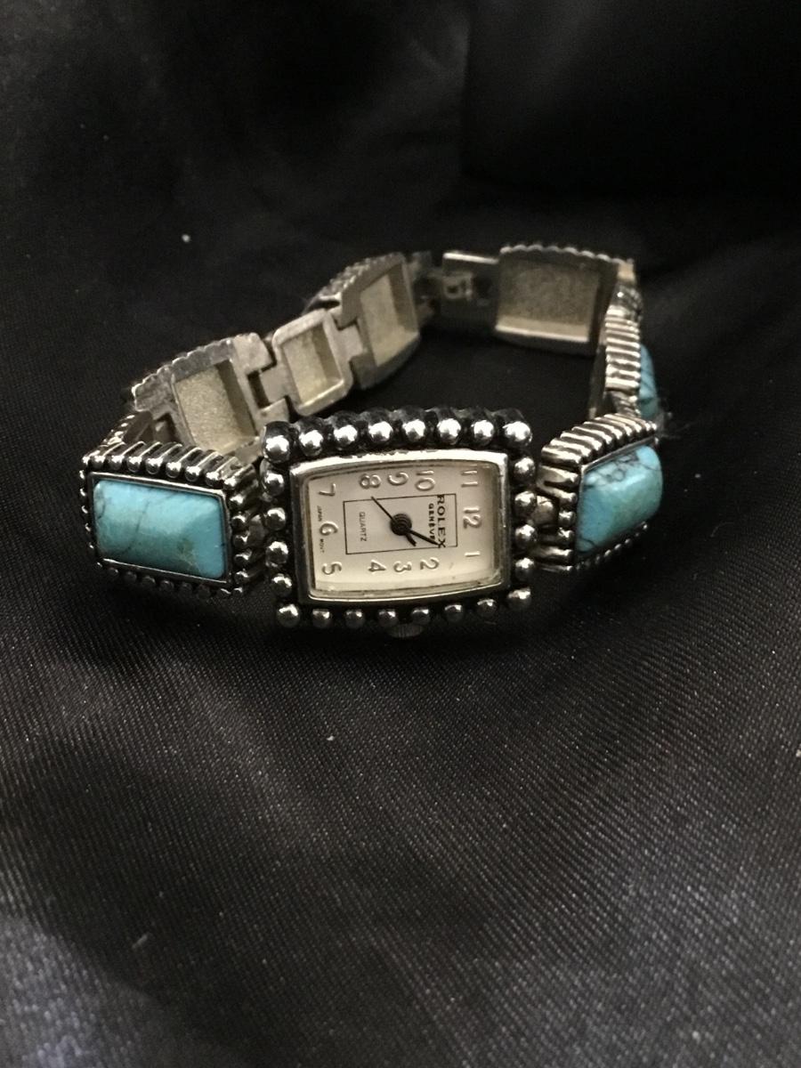 Turquoise tone and silver tone Rolex Geneva wristwatch