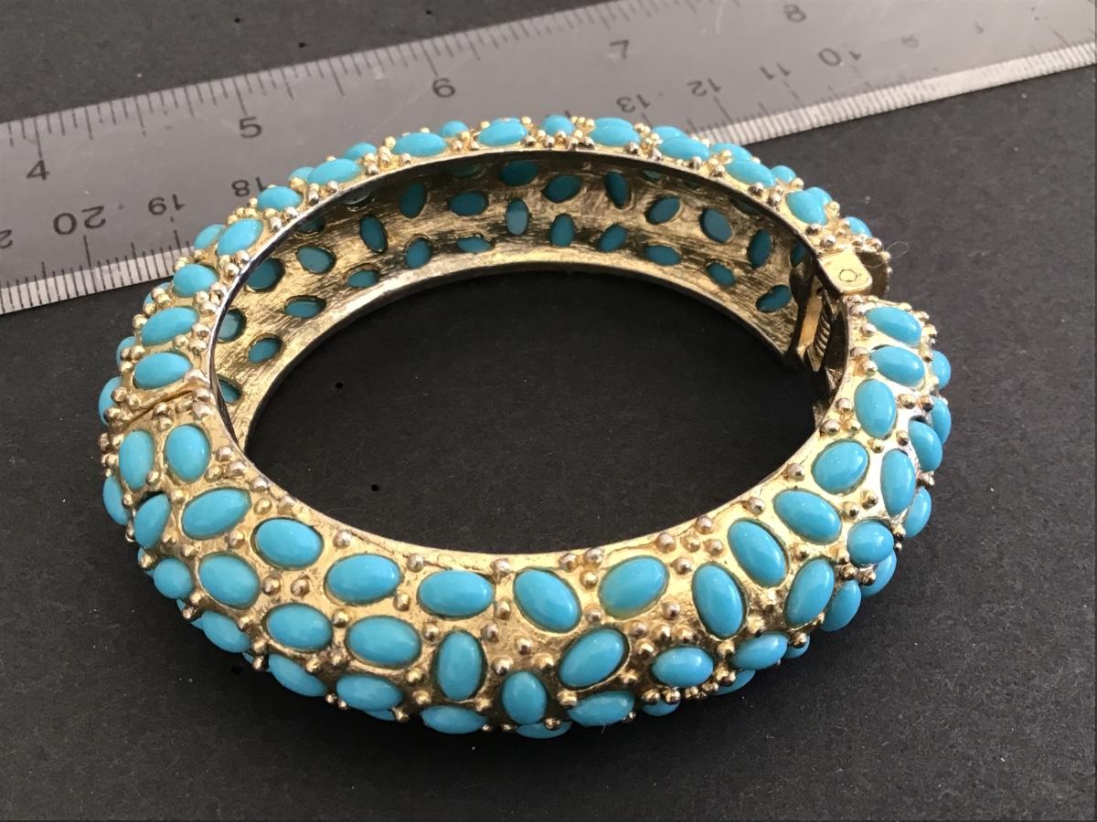 Turquoise Tone Beads in gold Tone. Clamper Bracelet