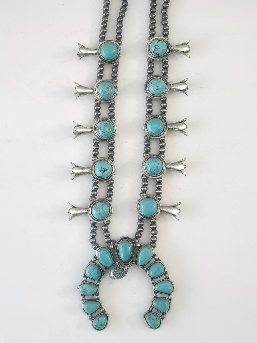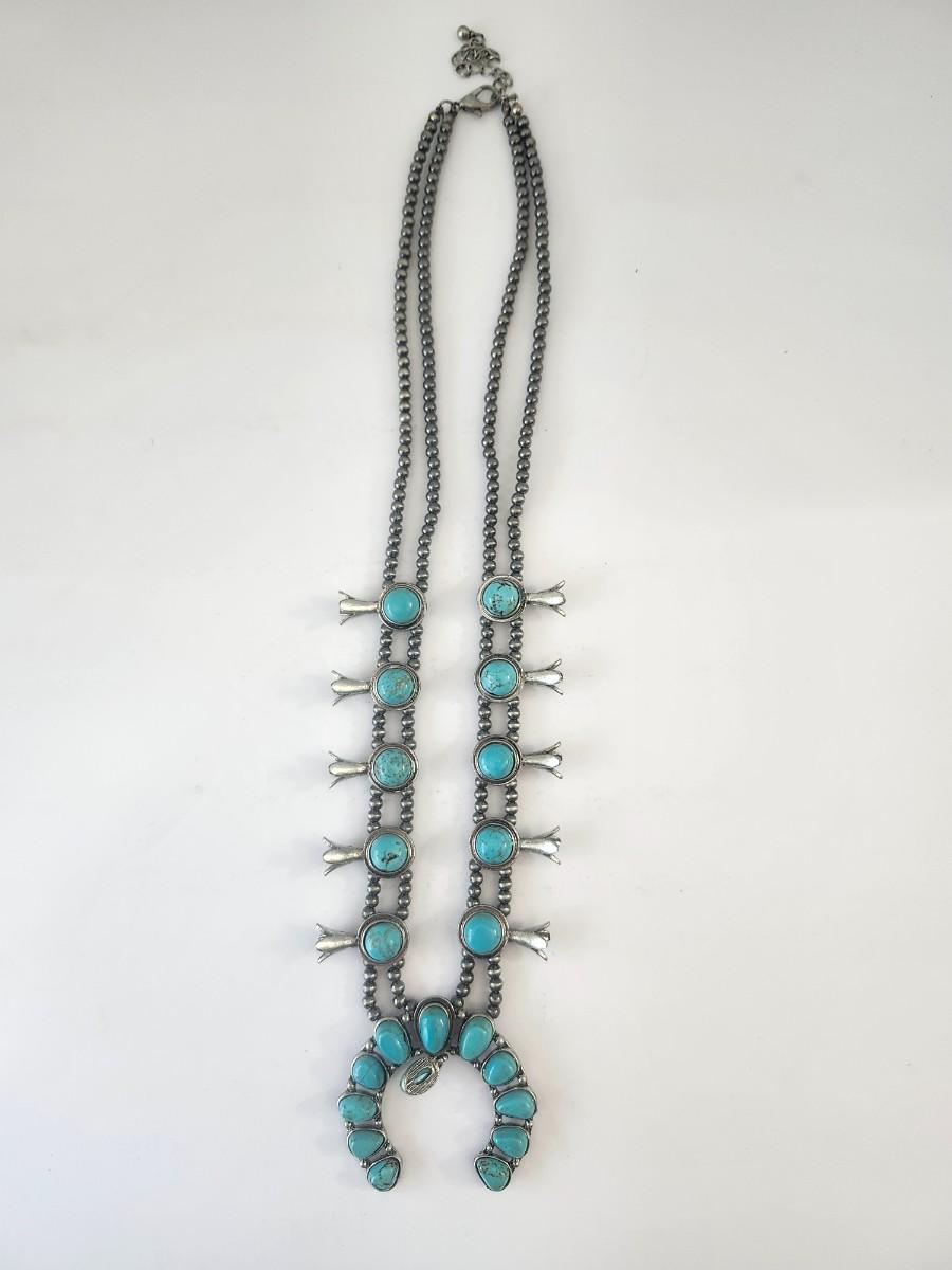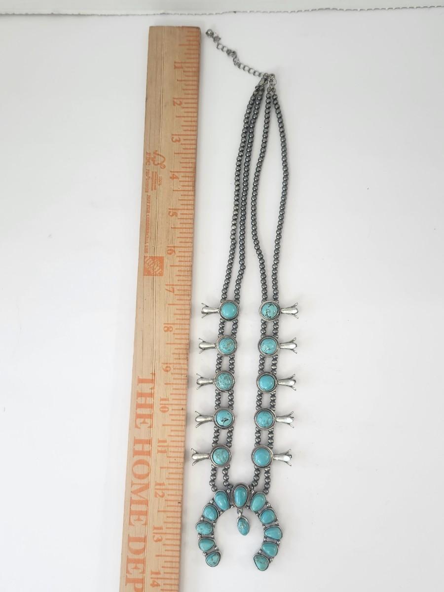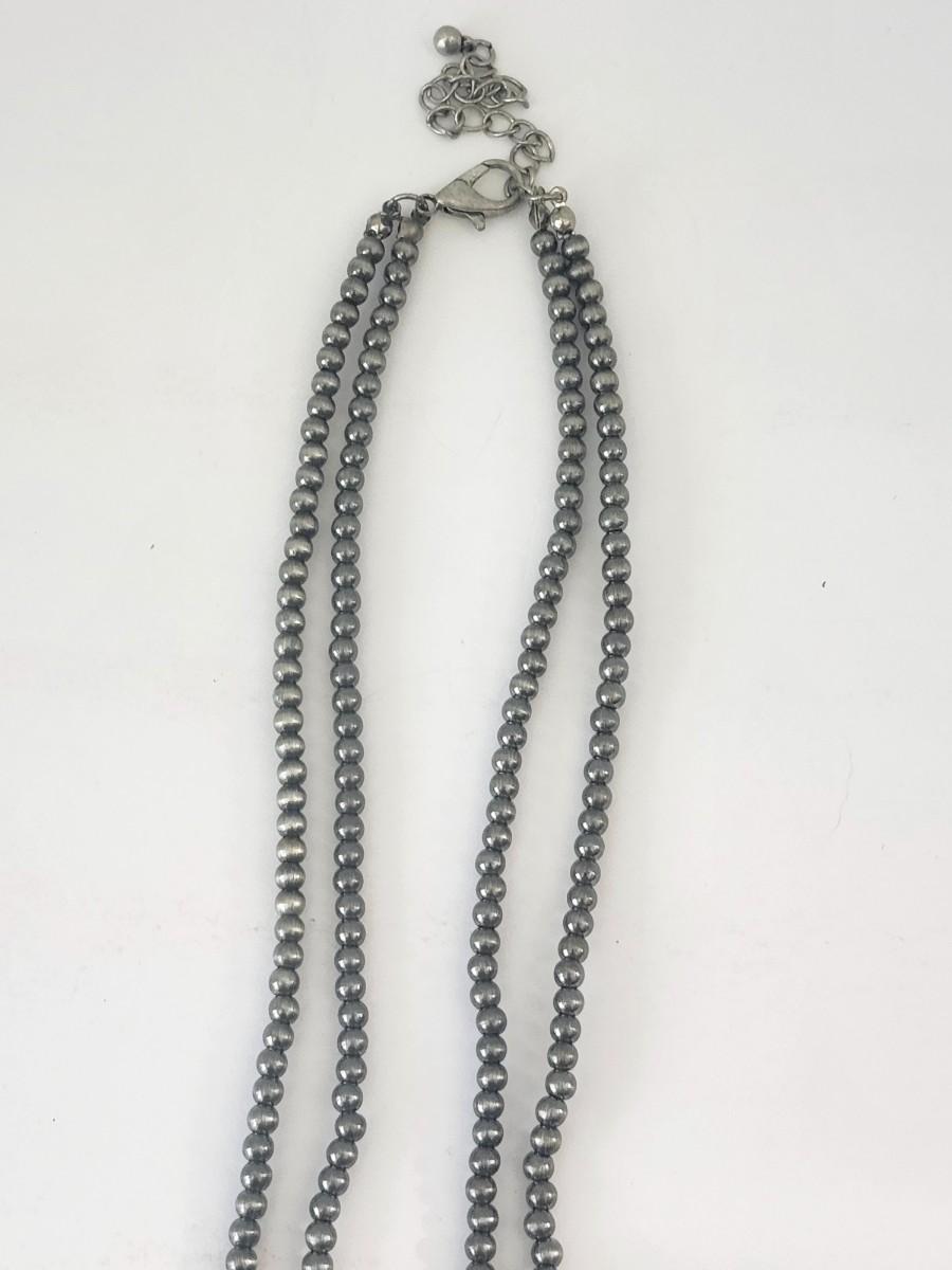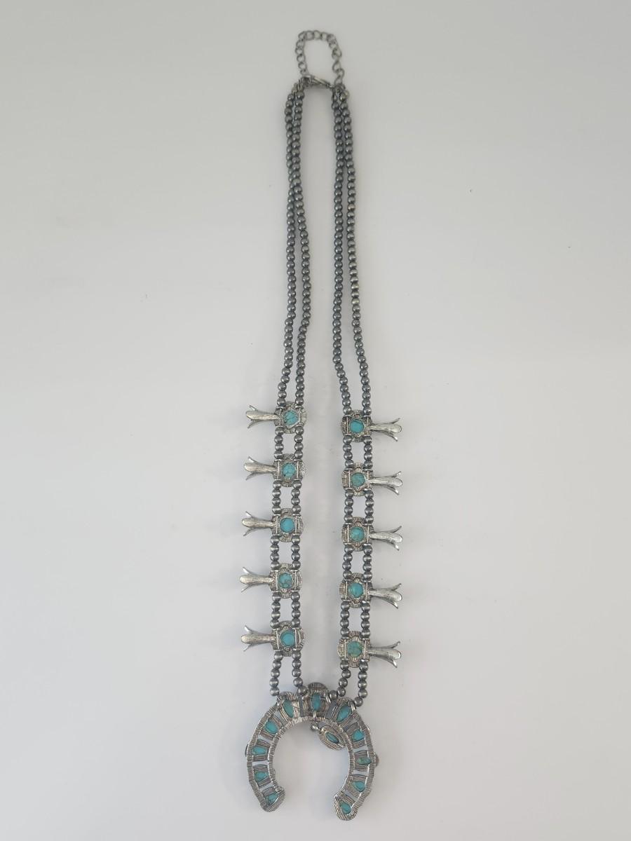 Turquoise Tone Crescent Pendant Double Strand Beaded Necklace Silver Tone Southwestern Style