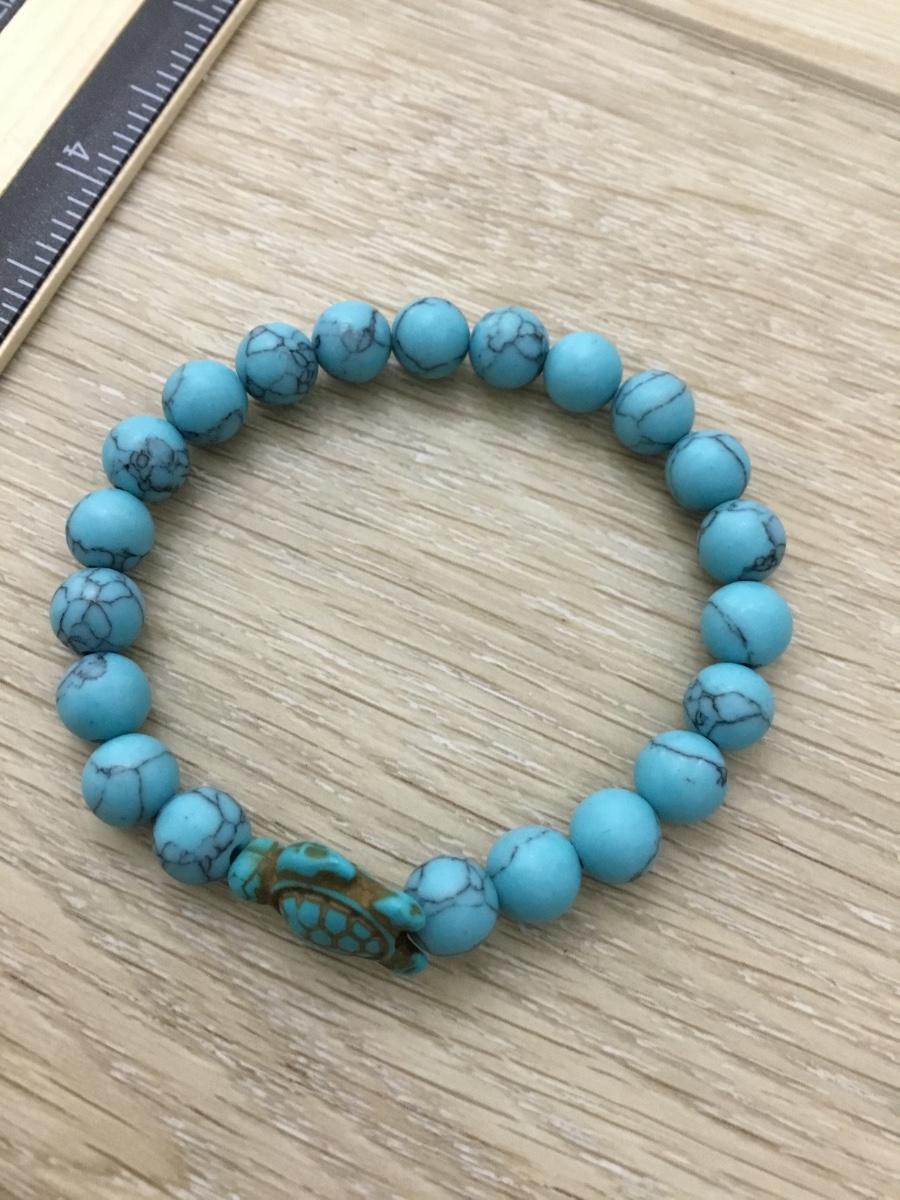 Turquoise Turtle Bracelet Natural Stone Beaded Charm Bracelets for Men Women