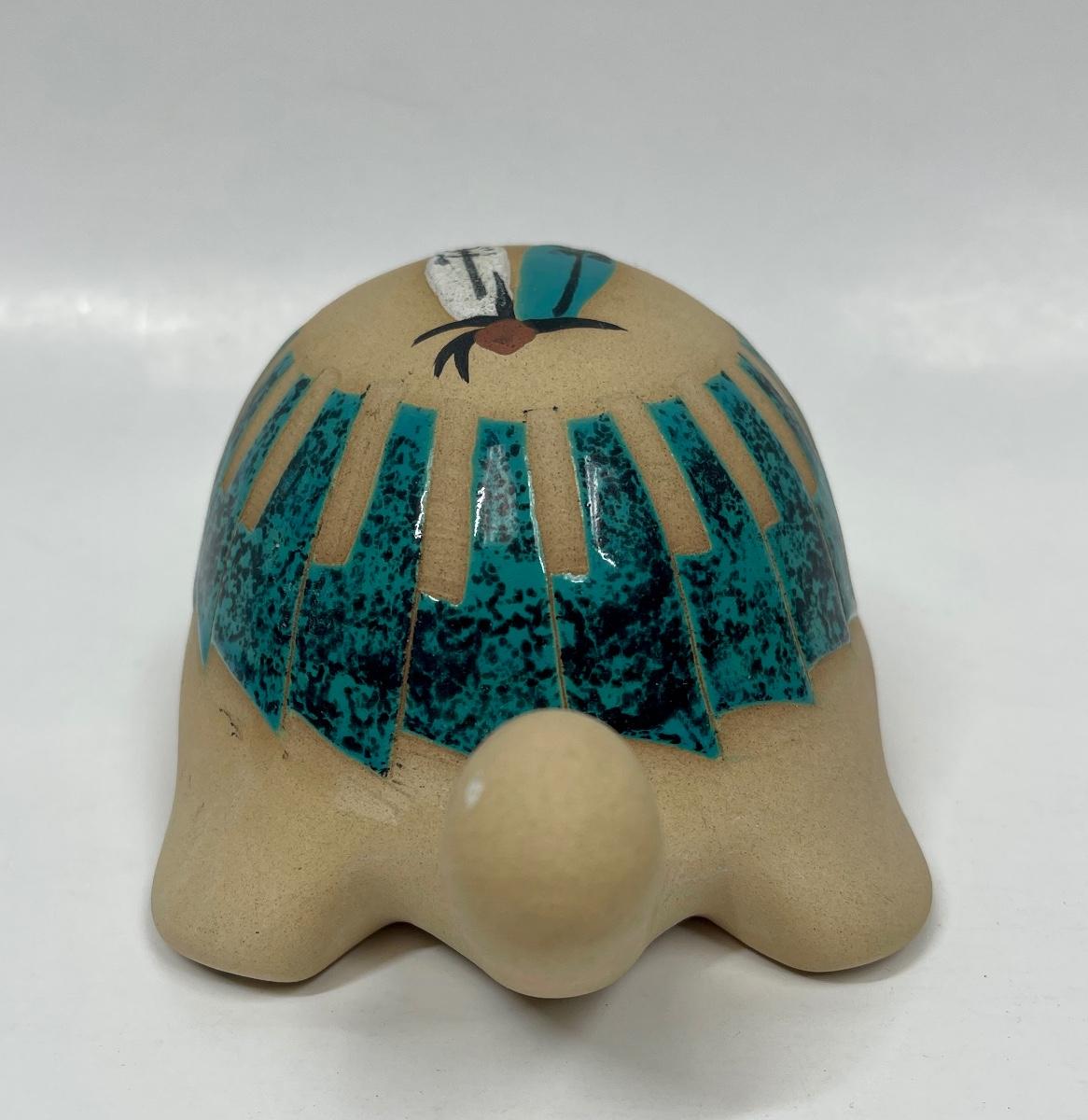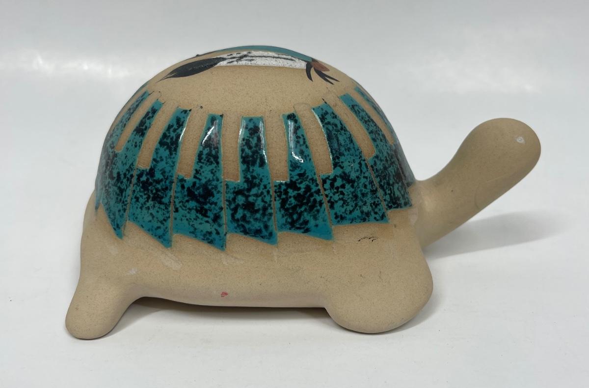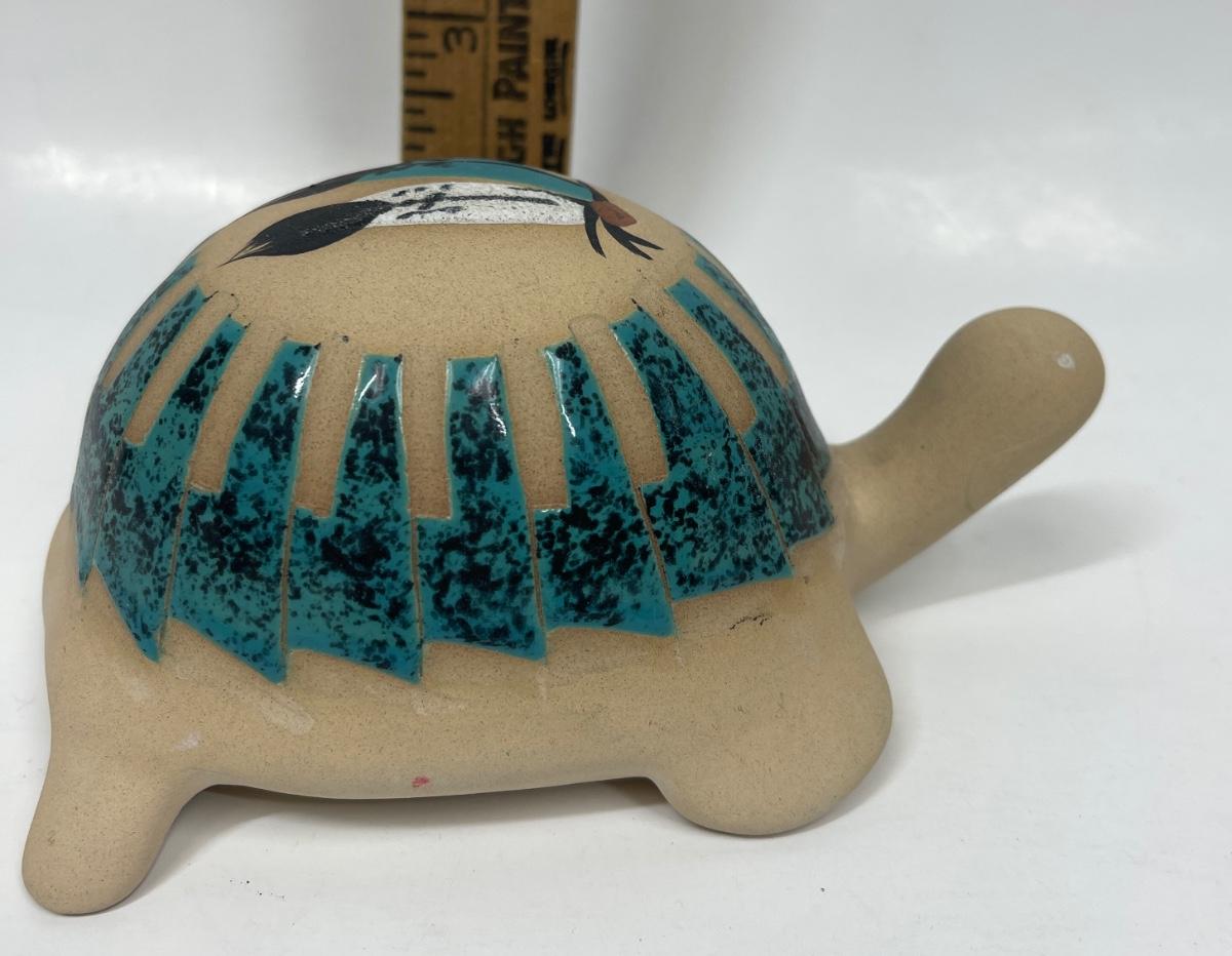Turtle Figurine Vintage Southwestern American Indian Hand-painted with Malachite Scales signed