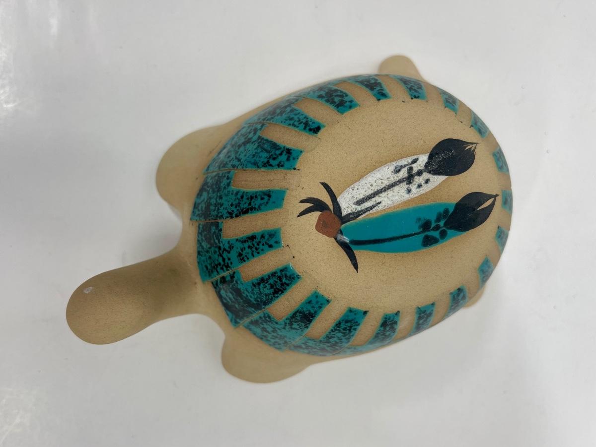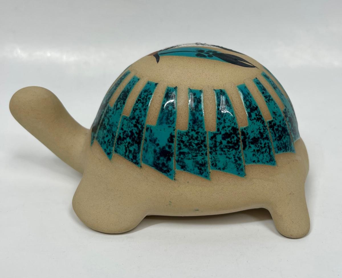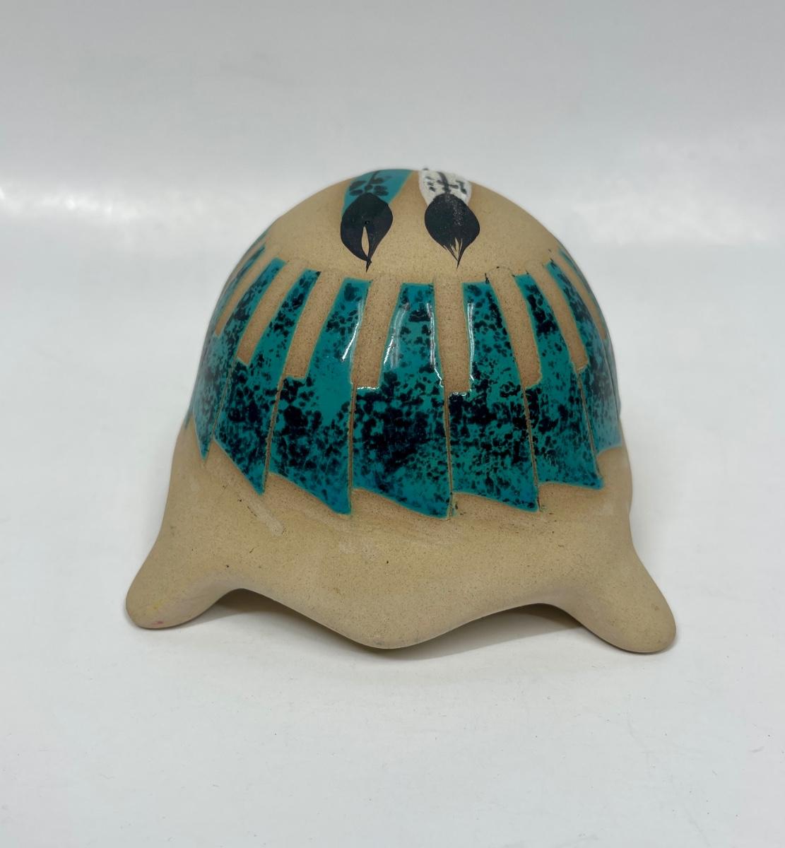 Turtle Figurine Vintage Southwestern American Indian Hand-painted with Malachite Scales signed