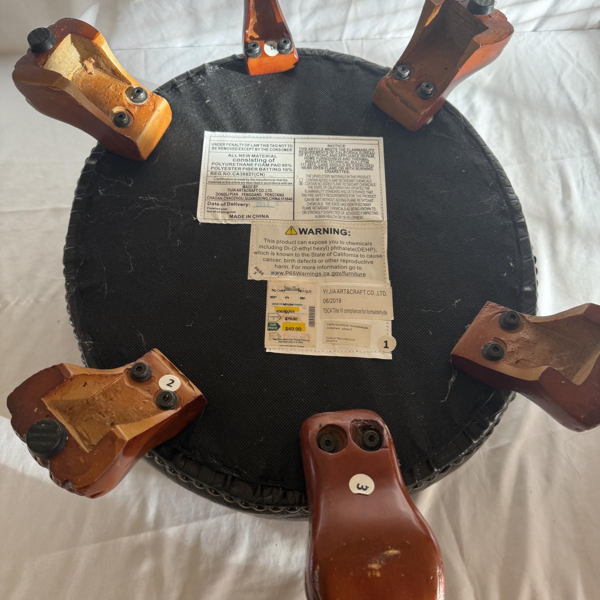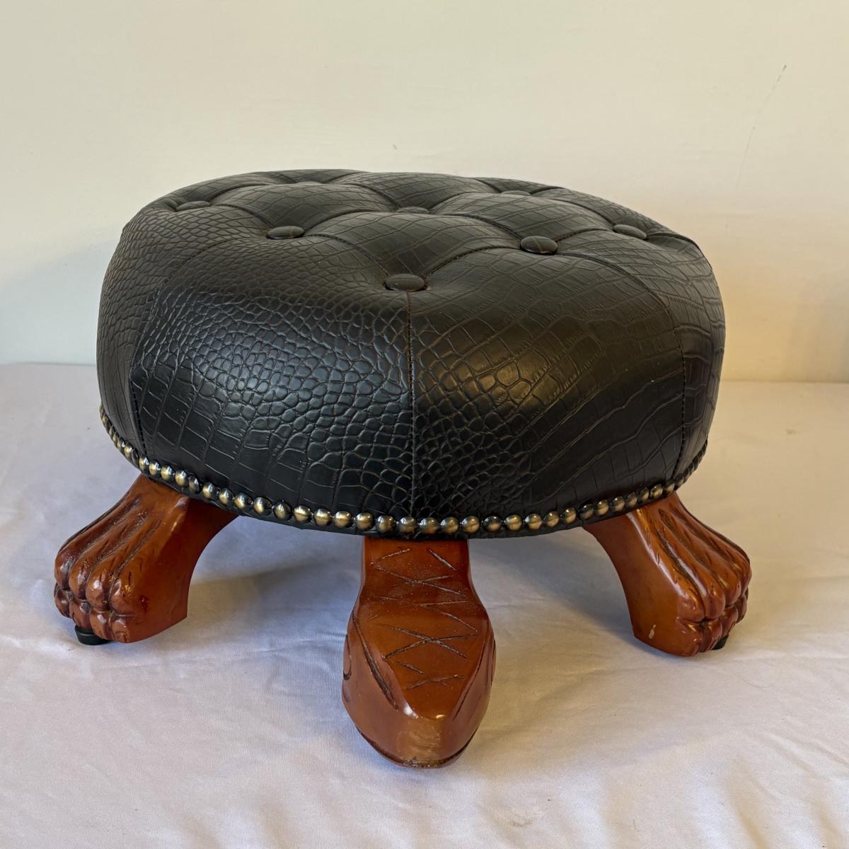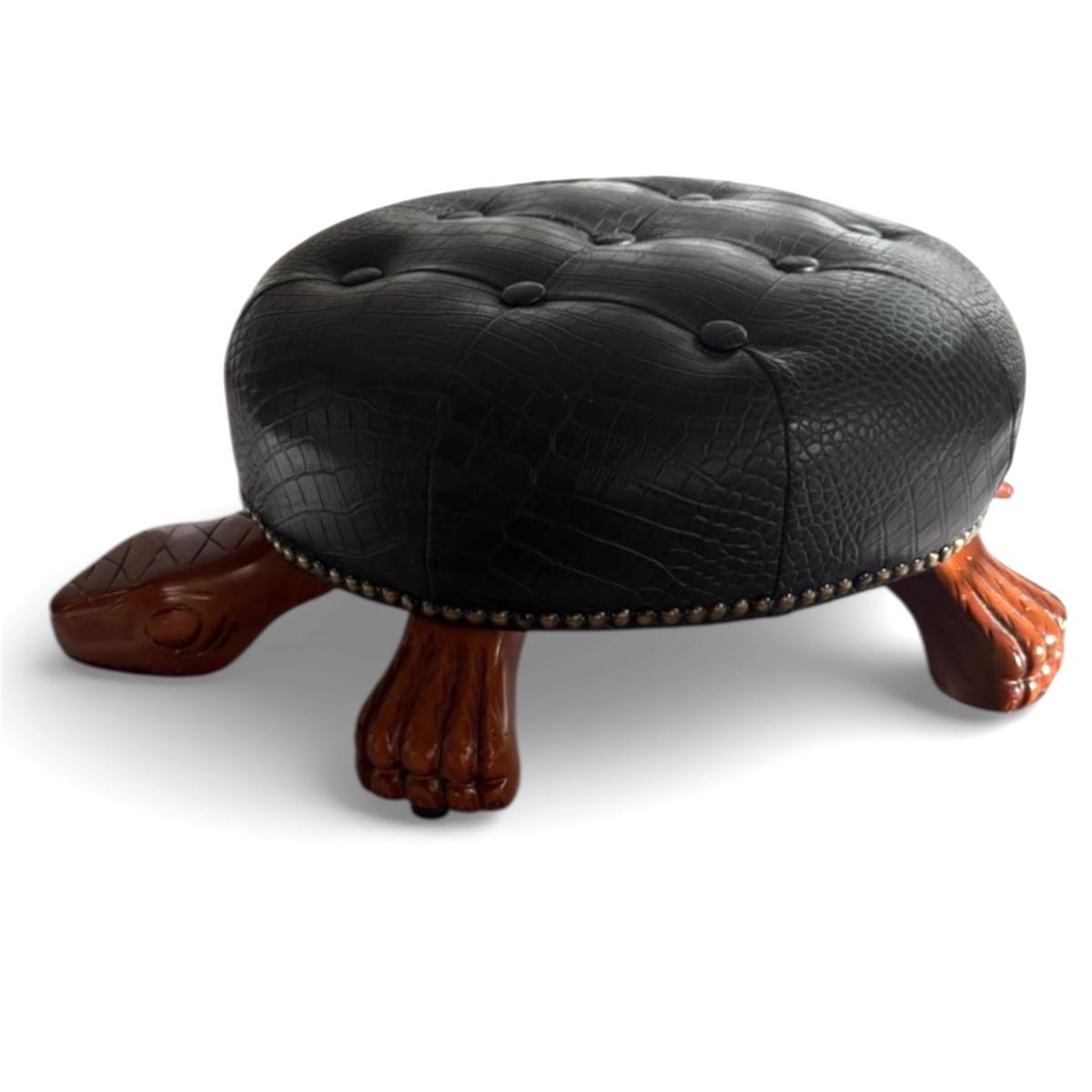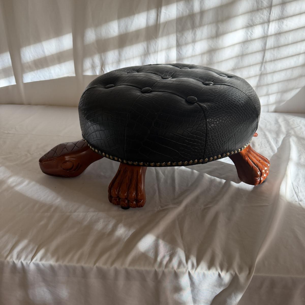 This unique turtle footrest has a padded faux leather cover with resin feet and head. Piece measures 21” x 26” x 9”H.