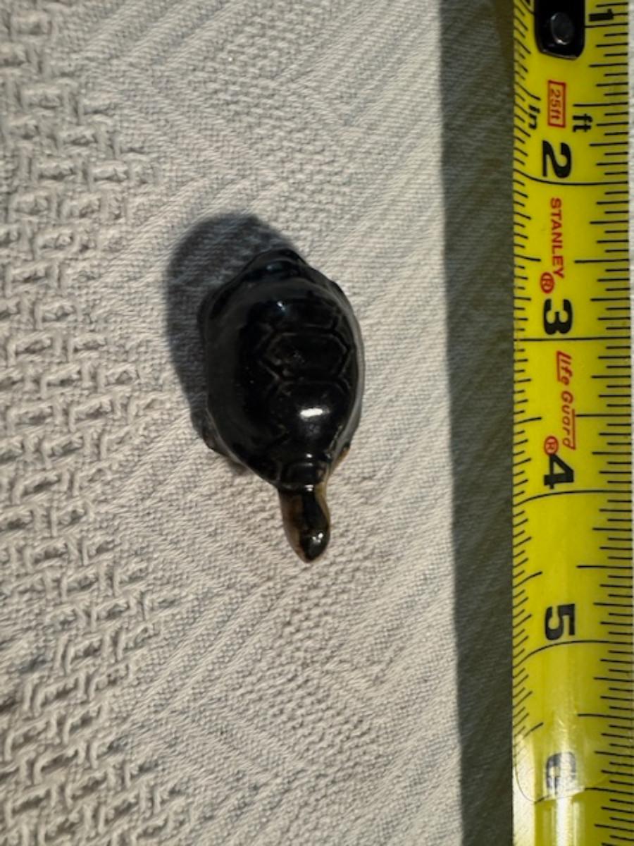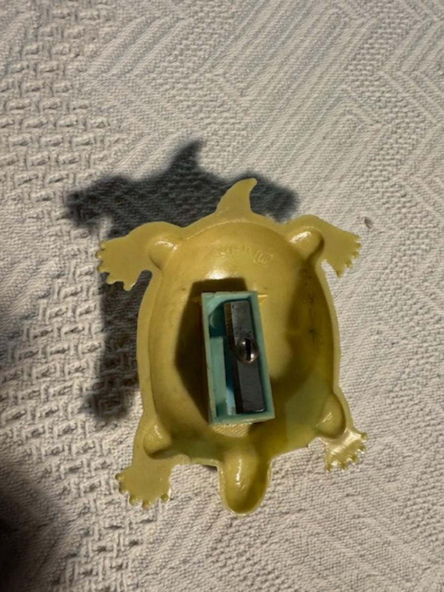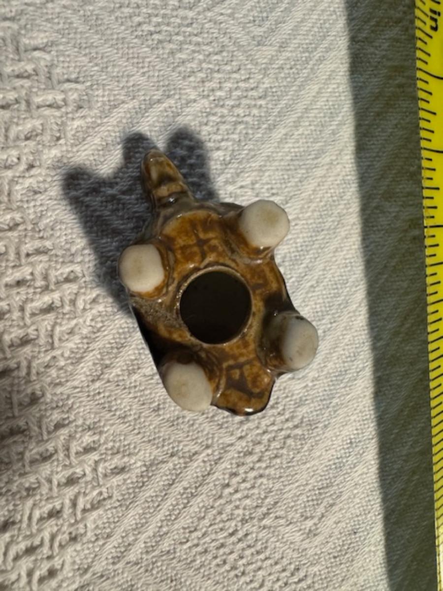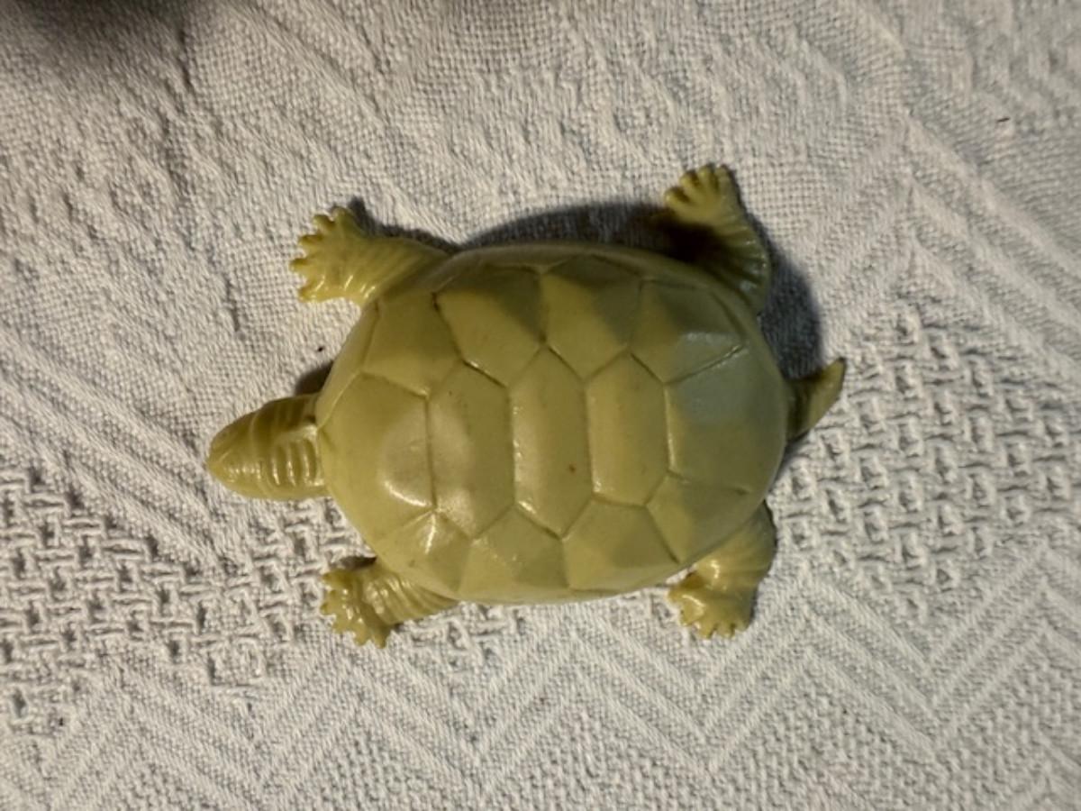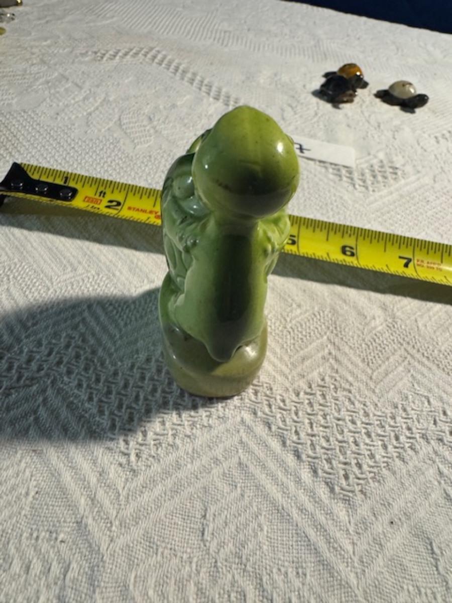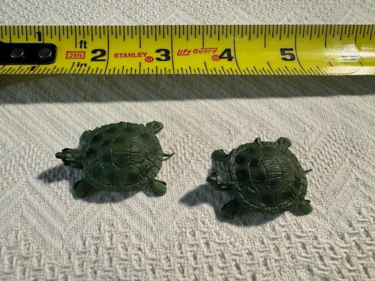 1 ceramic turtle toothpick holder perhaps, 1 metal nut turtle, 1 plastic pencil sharpener turtle. 1 tiger's eye turtle, 1 mini crystal turtle, 2 small plastic turtles, 2 Ecuador stone turtles (one with small chip), and 1 small pottery type turtle.