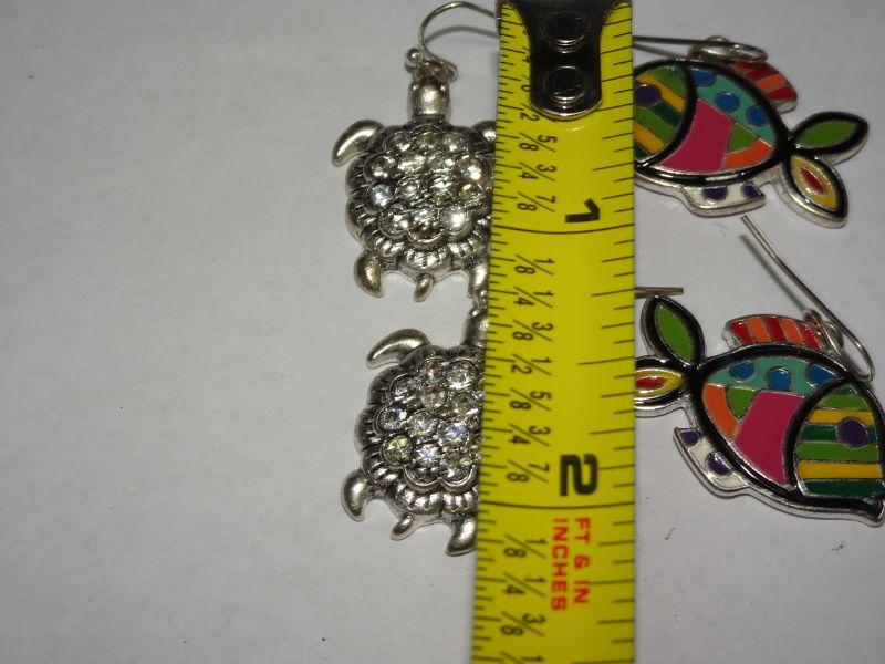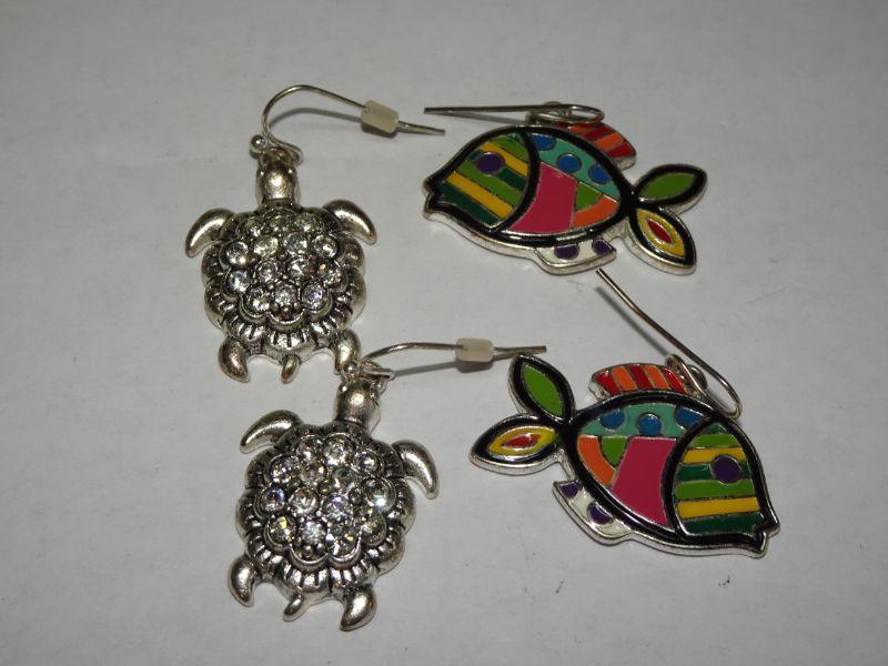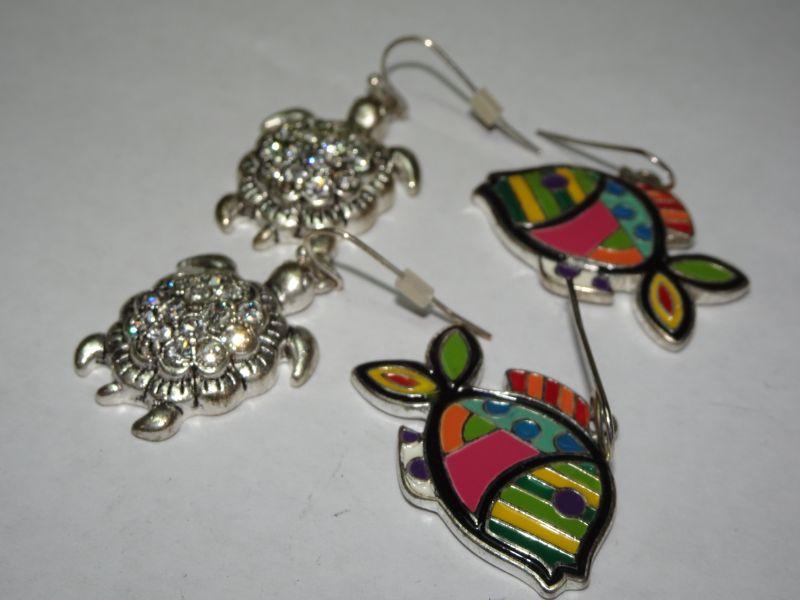 Turtles & Rainbow Fish Earrings, Silver Tone
