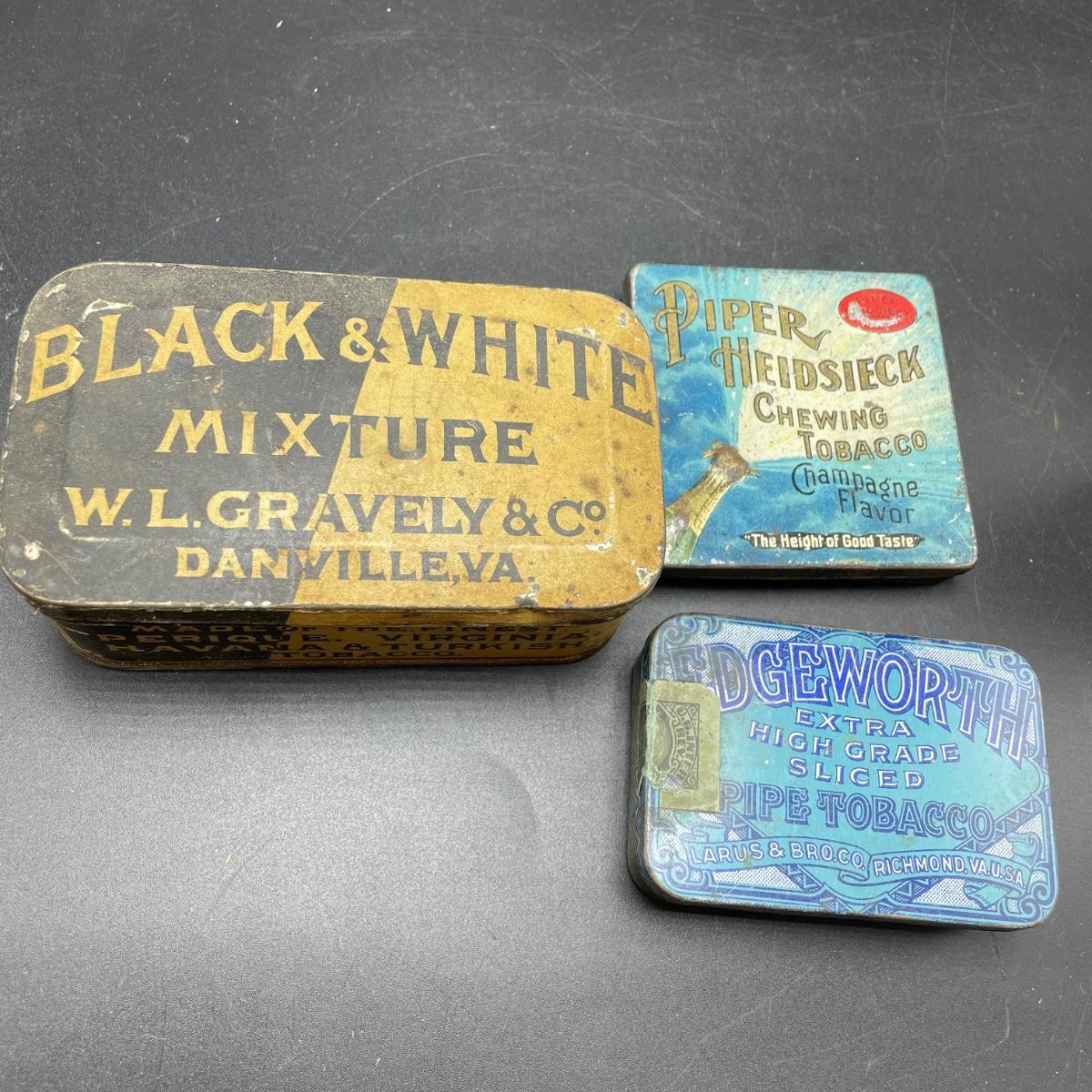Tuxedo & Revelation Pocket Tins, Piper Heidsieck, Edgeworth and Black&White Tins (GL - SS)