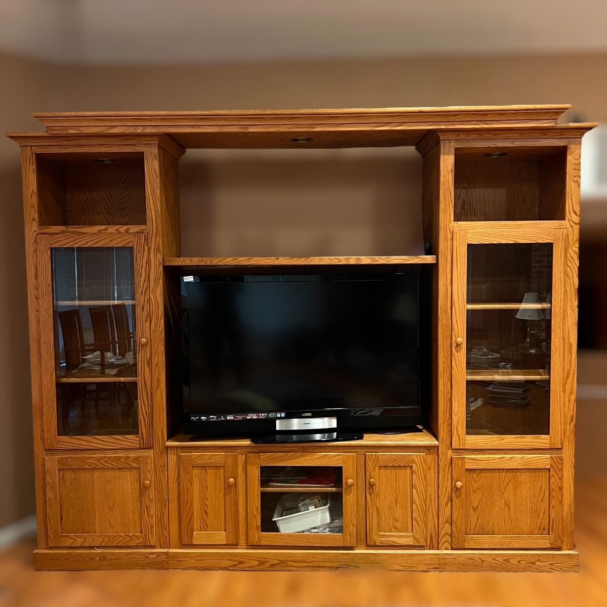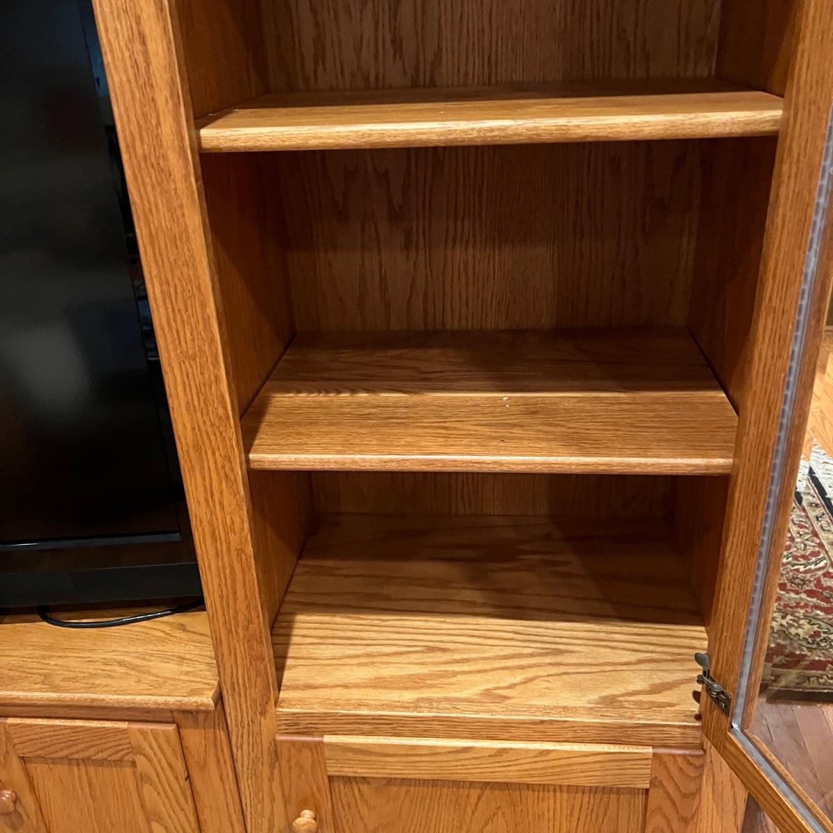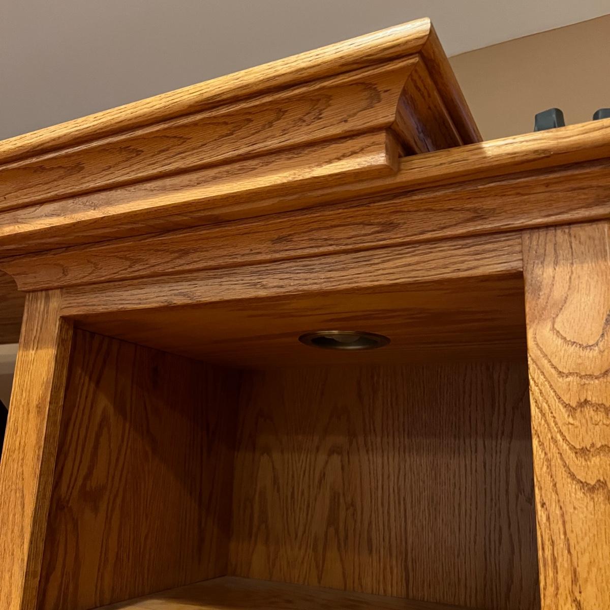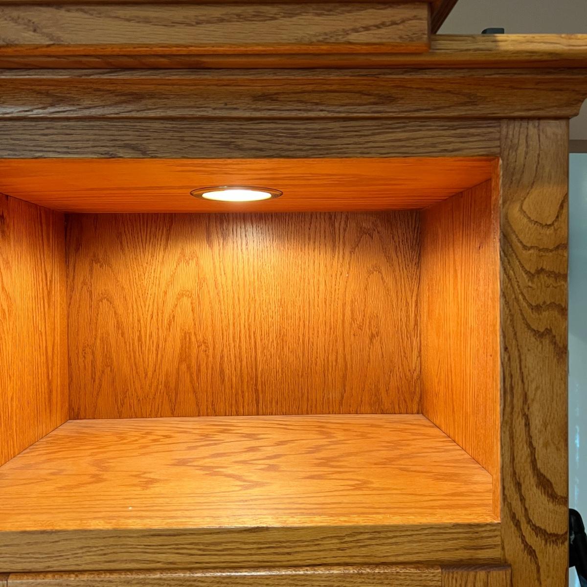 3 top cabinets light up. 3 separate pieces for easy moving.