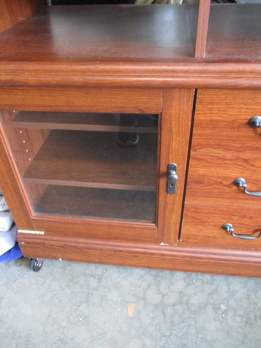 Cabinet does have a little damage where the doors open, I think doors need adjusting