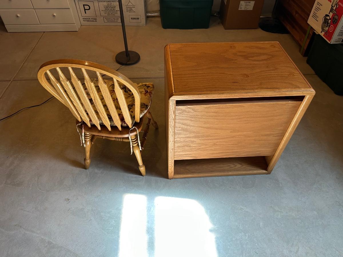 TV STAND AND OAK CHAIR