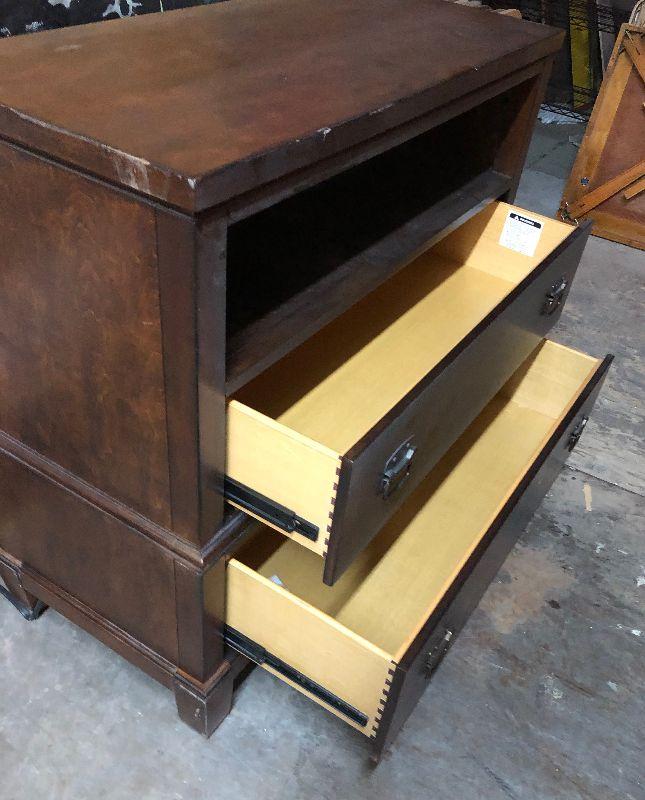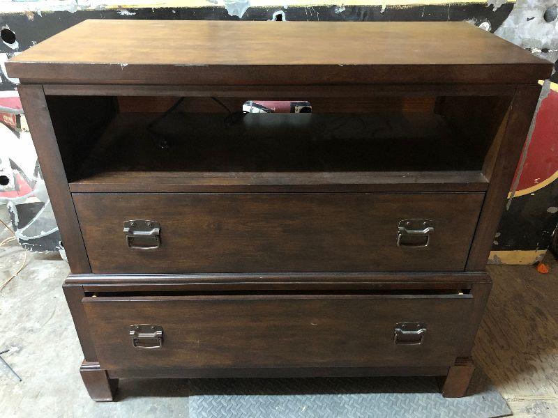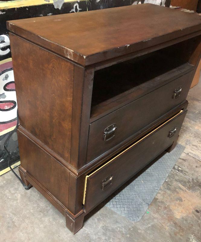 With a few wear points on finish here is a 40 x 19 x 38" TV stand cabinet with drawers...as shown...