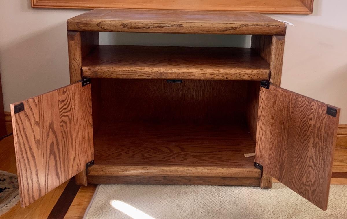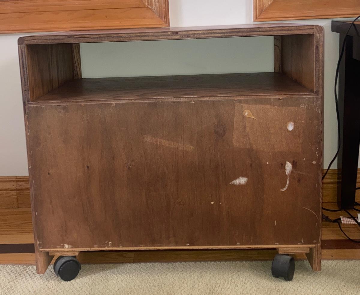 Wood T.V stand on casters 26 26 1/2 “ X 16” X 24