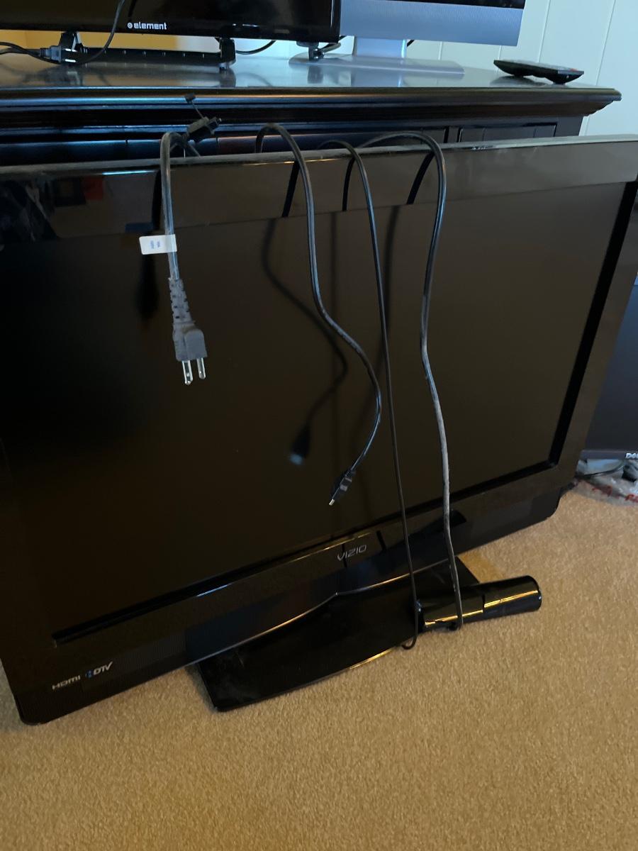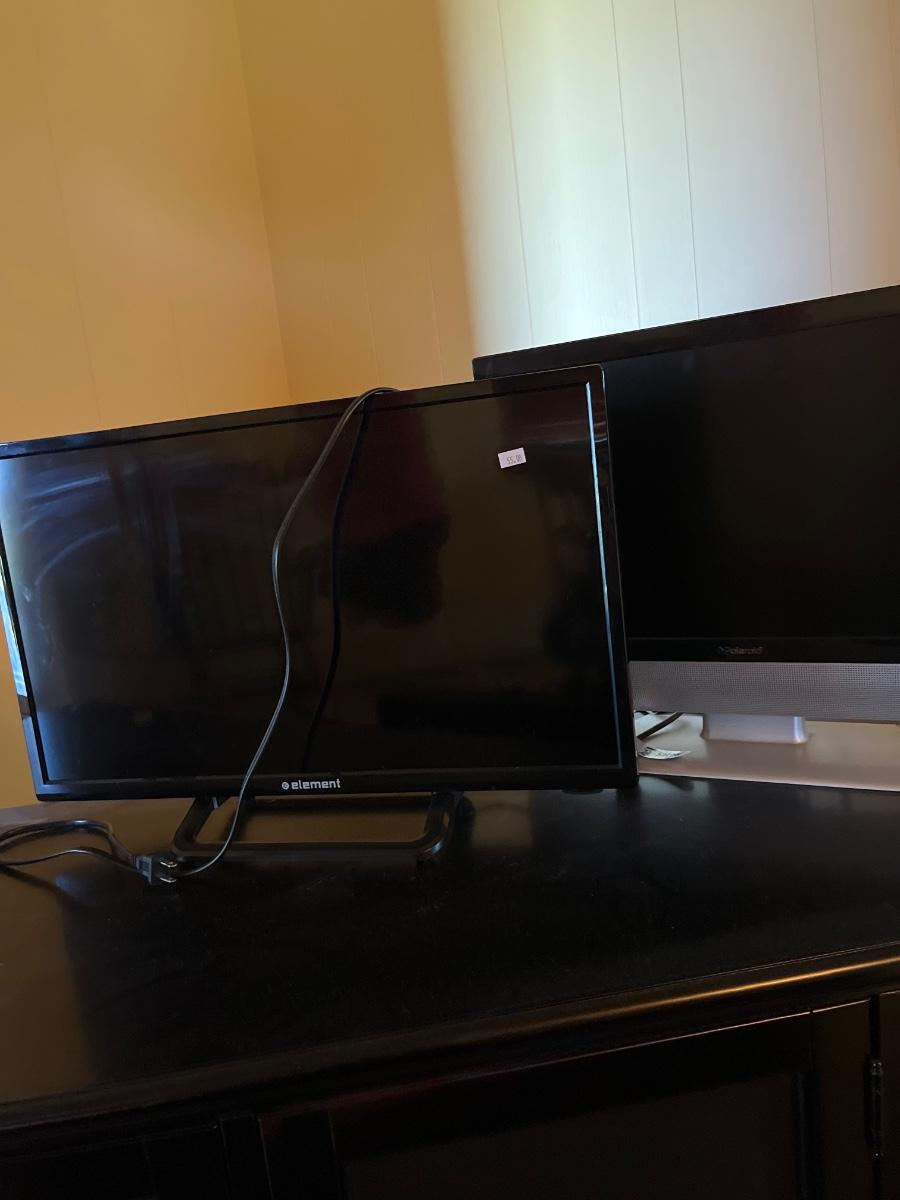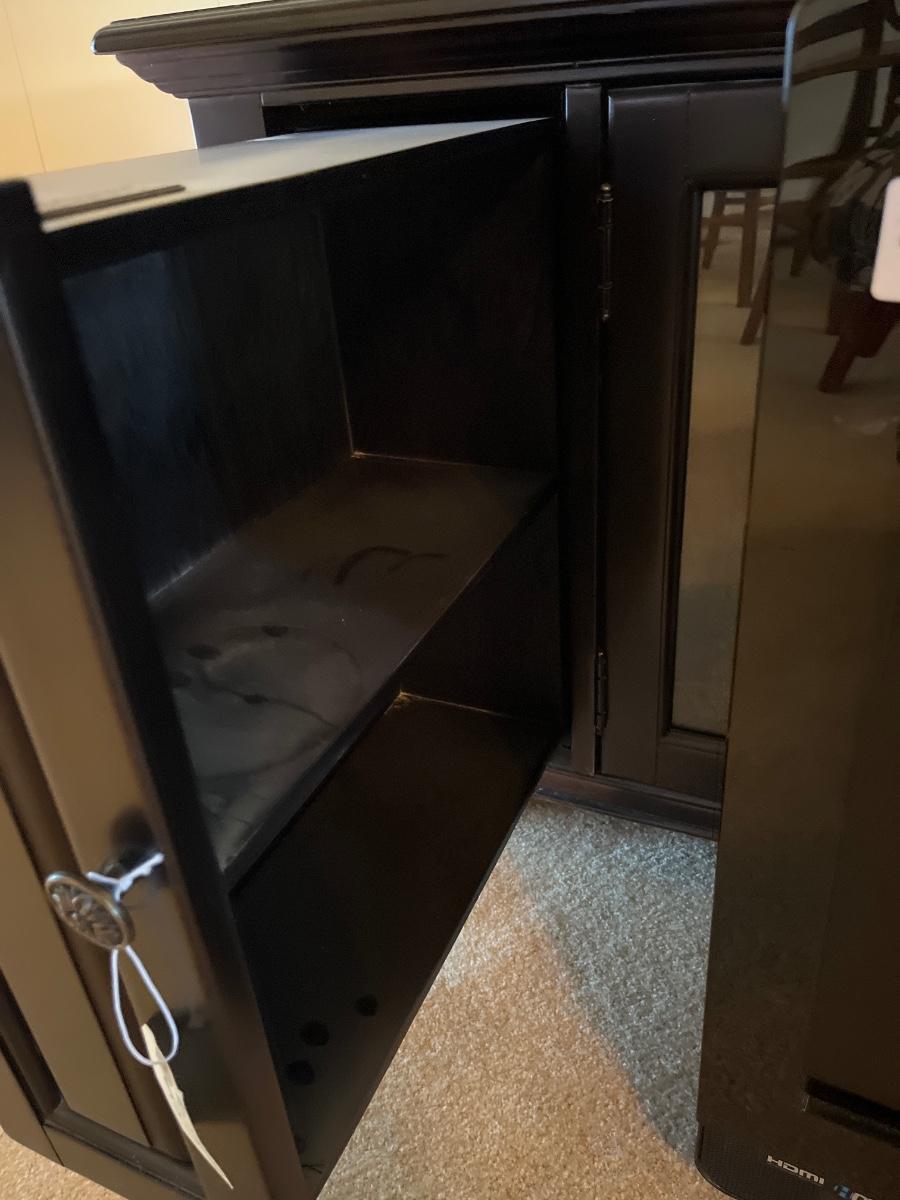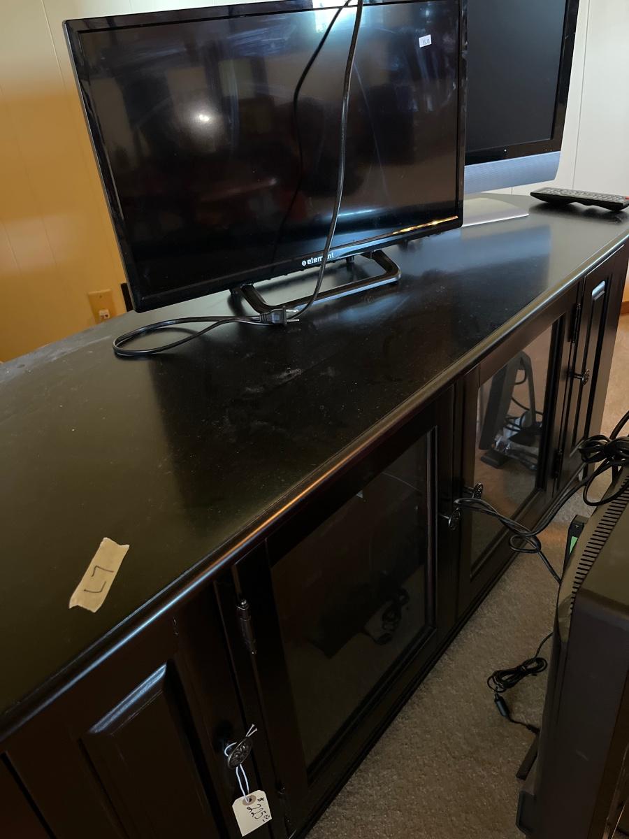 TV/ Stereo Cabinet holds movies has two pull out drawers. Includes TVs and monitors.