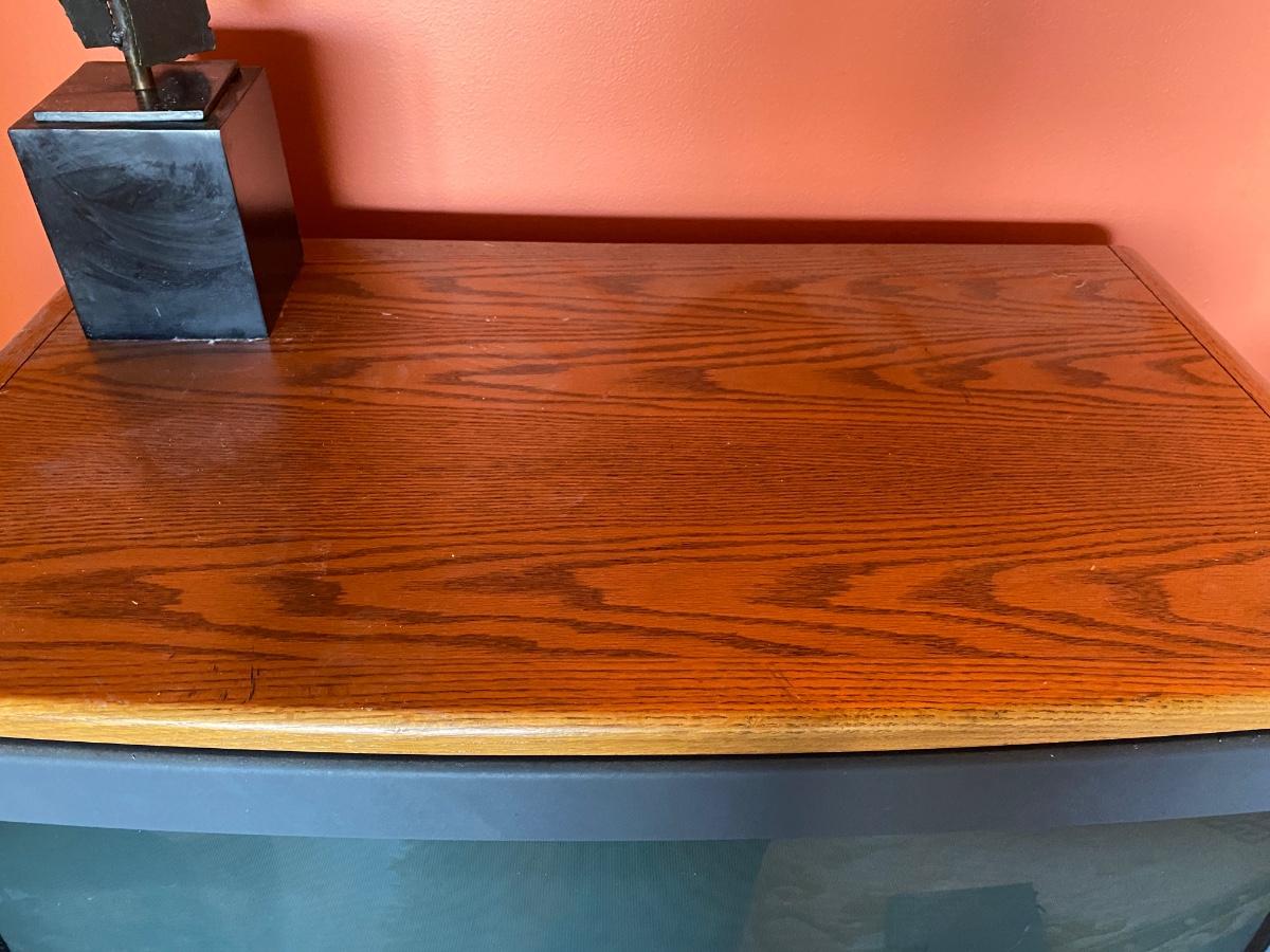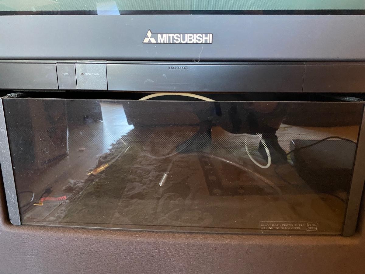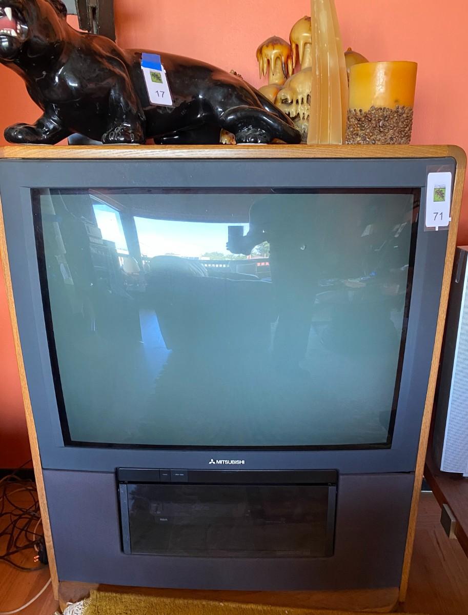 Mitsubishi TV/Storage cabinet combo. Wood frame. Has storage compartment under TV. CK-35702