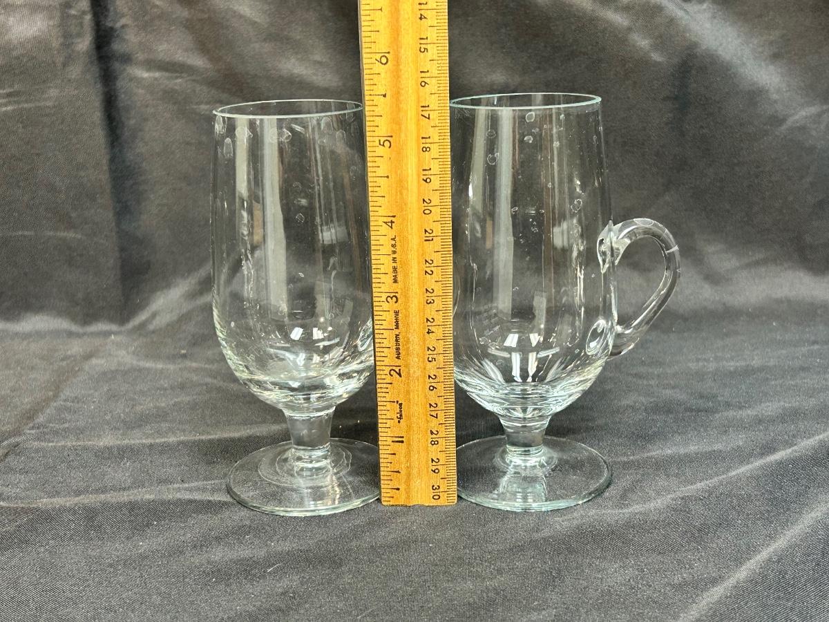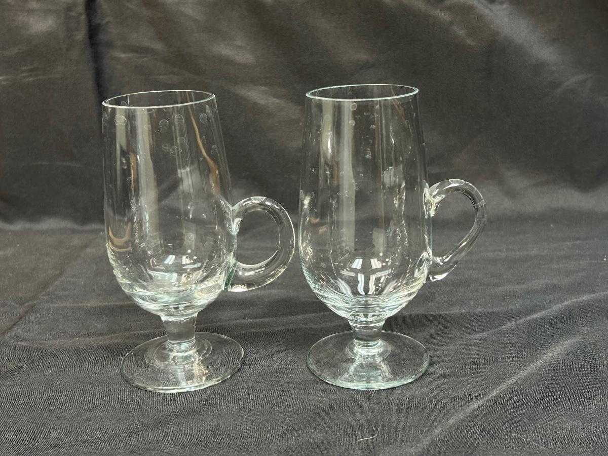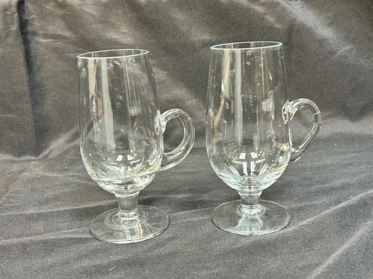 Pair of Short Clear Glass Irish Coffee Liqueur Handled Mugs Cups