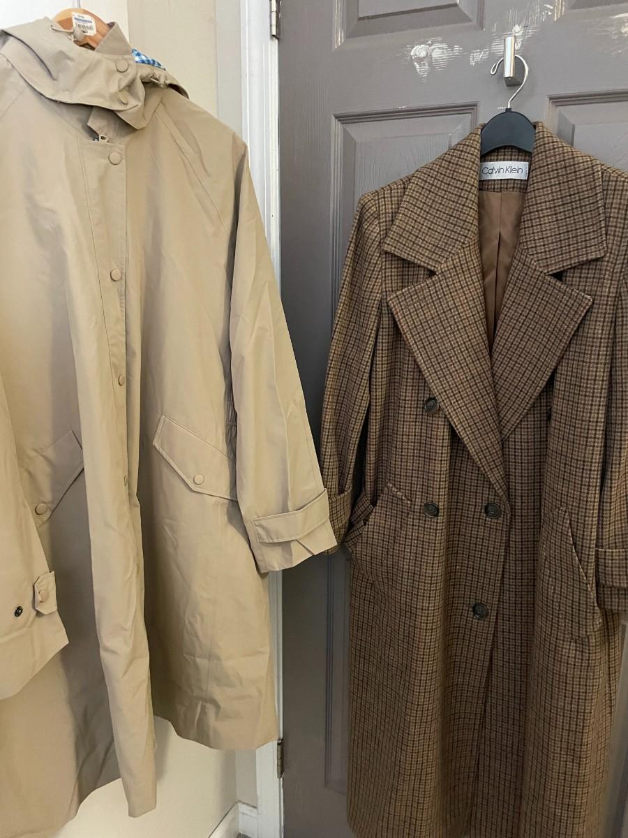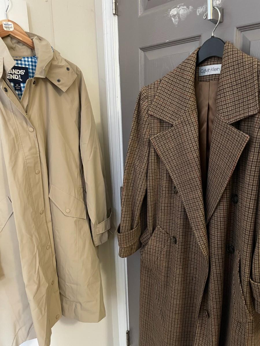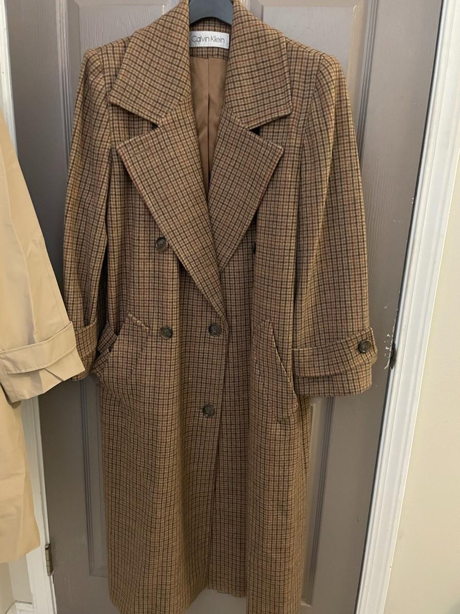 1 Calvin Klein Winter Tweed Coat, no size - Possibly Large. 1 Lands End Rain Coat Size 3X