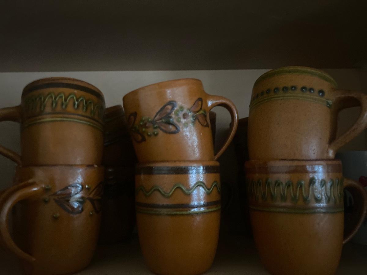 Twelve (12) clay mugs