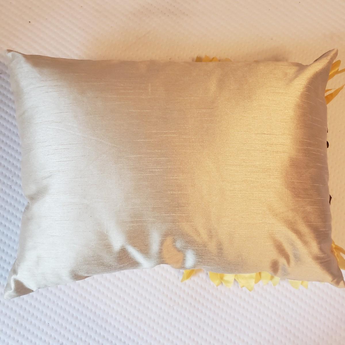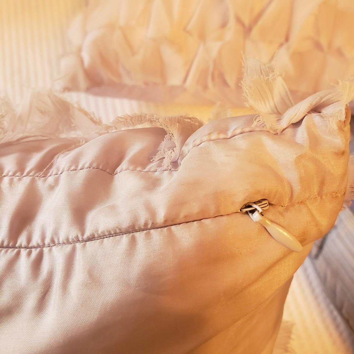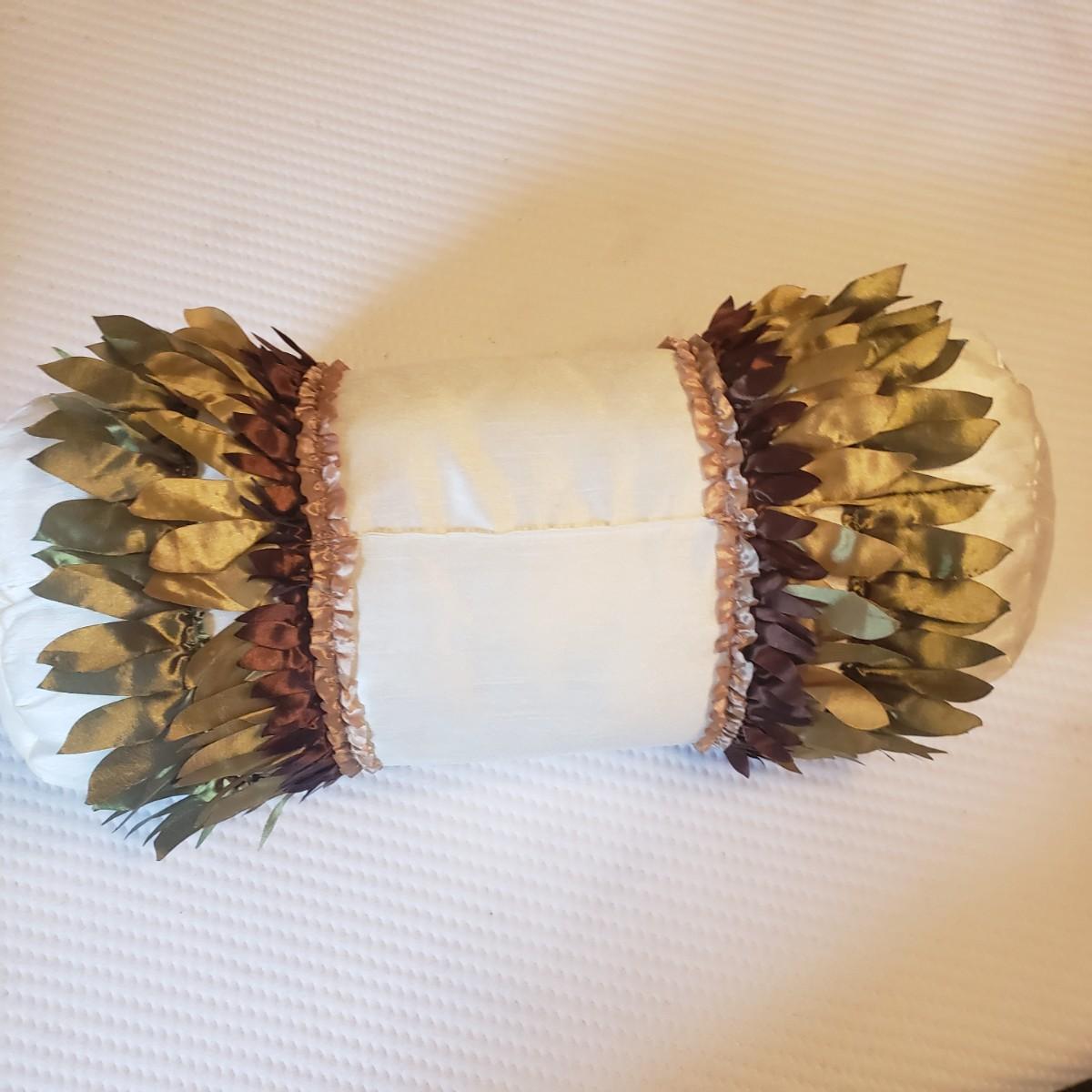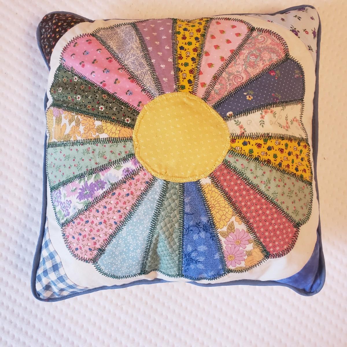These twelve decorative pillows will brighten any room! The butterfly and turquoise pillows measure 15" x 15" and are a cotton blend with polyester ribbons. The three sunflower pillows are a thicker polyester. The Bloom Craft Home pillow is 70% silk and 30% polyester.
