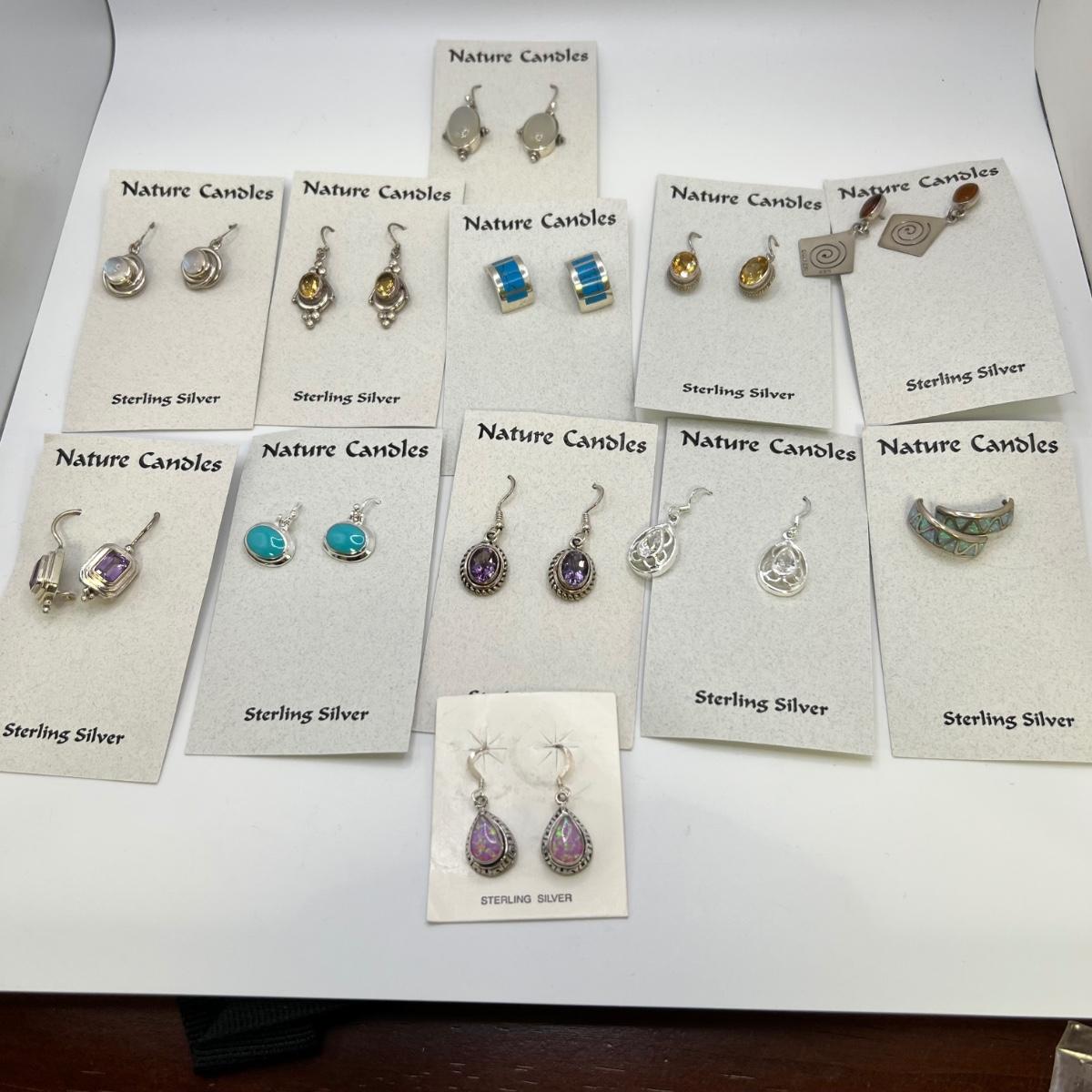 Twelve Pairs of Sterling Earrings By Natures Candles (ST-RG)