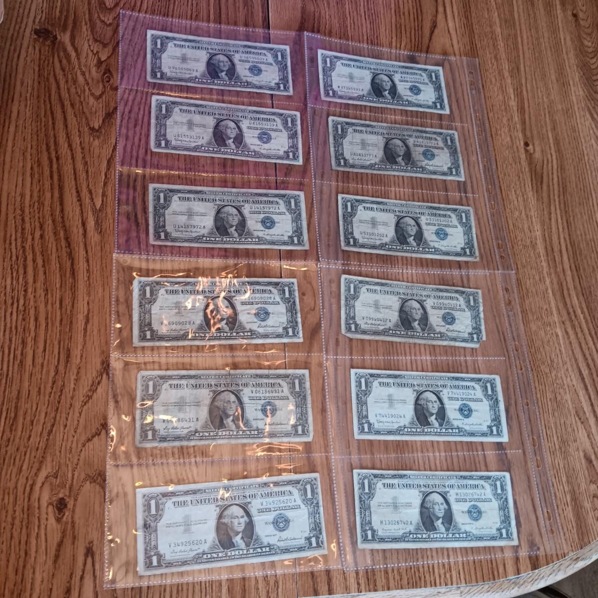 TWELVE SILVER CERTIFICATE 1 DOLLAR BILLS