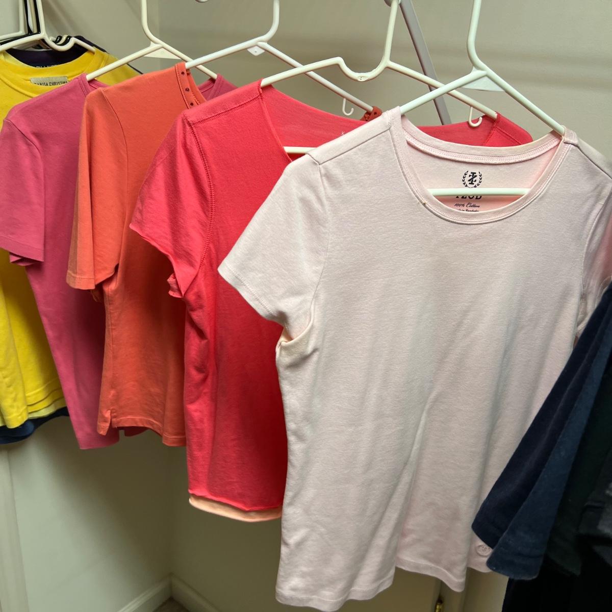 Lots of color options in this large lot of cotton t-shirts. See images for sizes and brands.