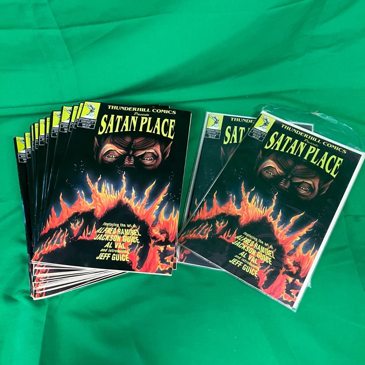 Twenty-three copies of Thunder Hill Comics Satan Place.