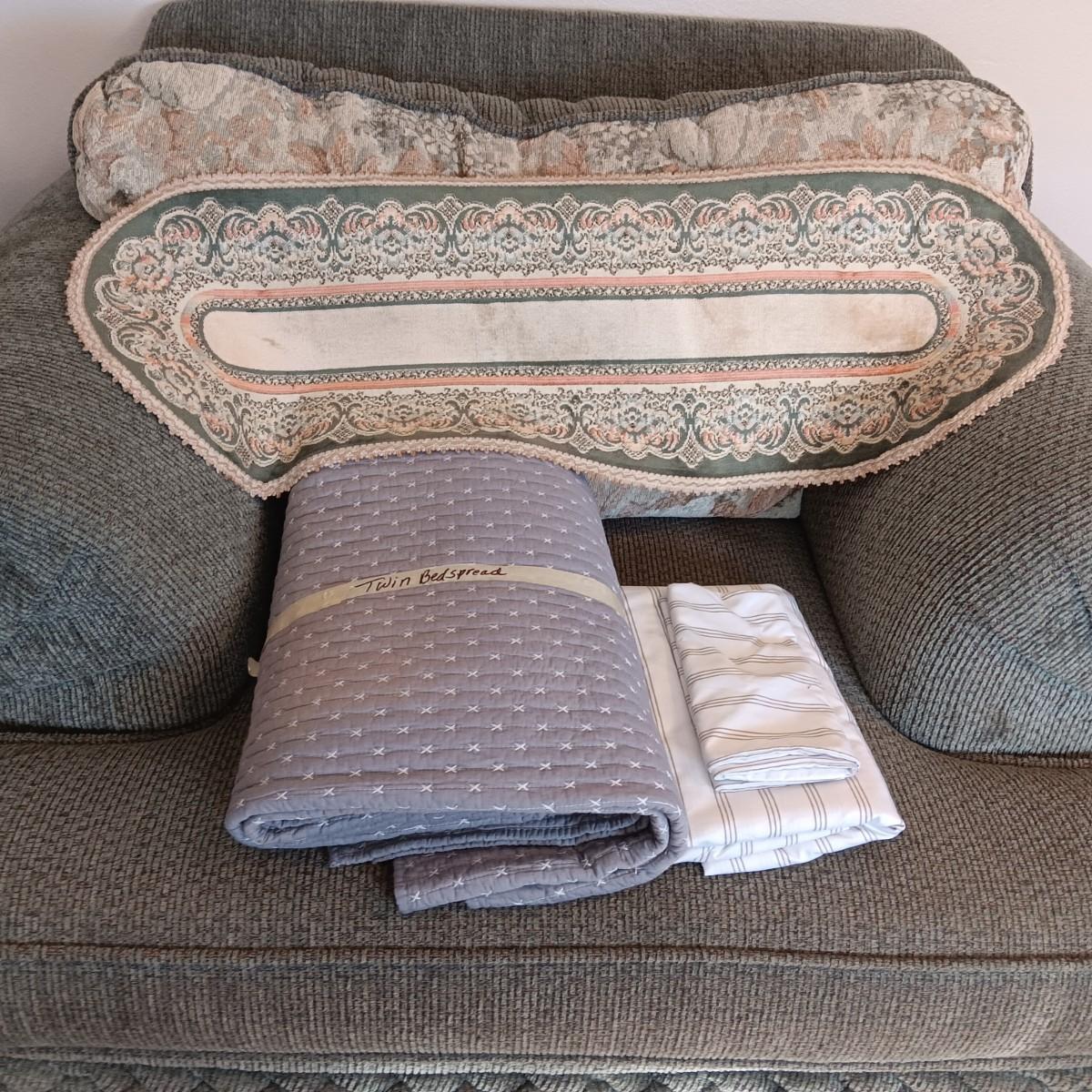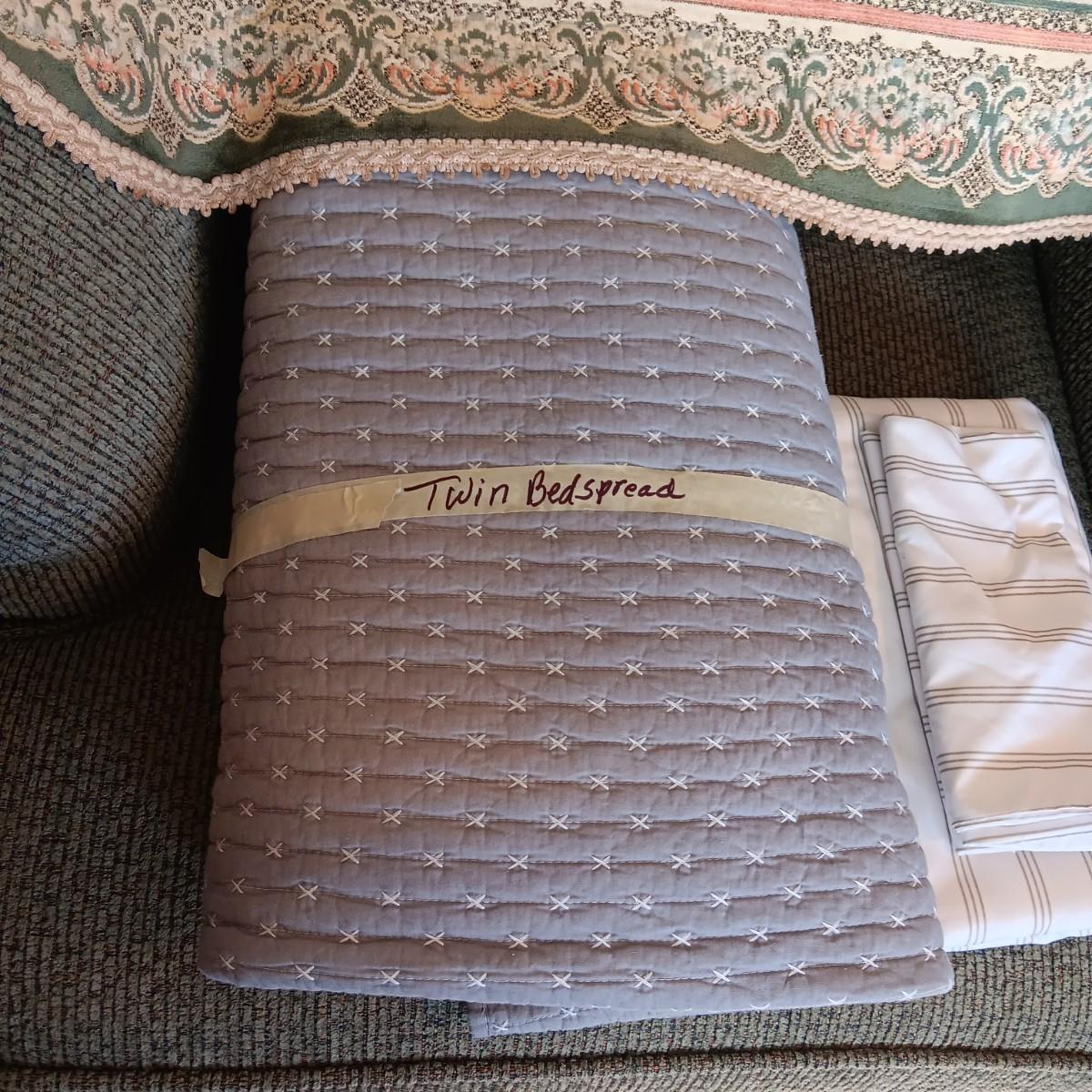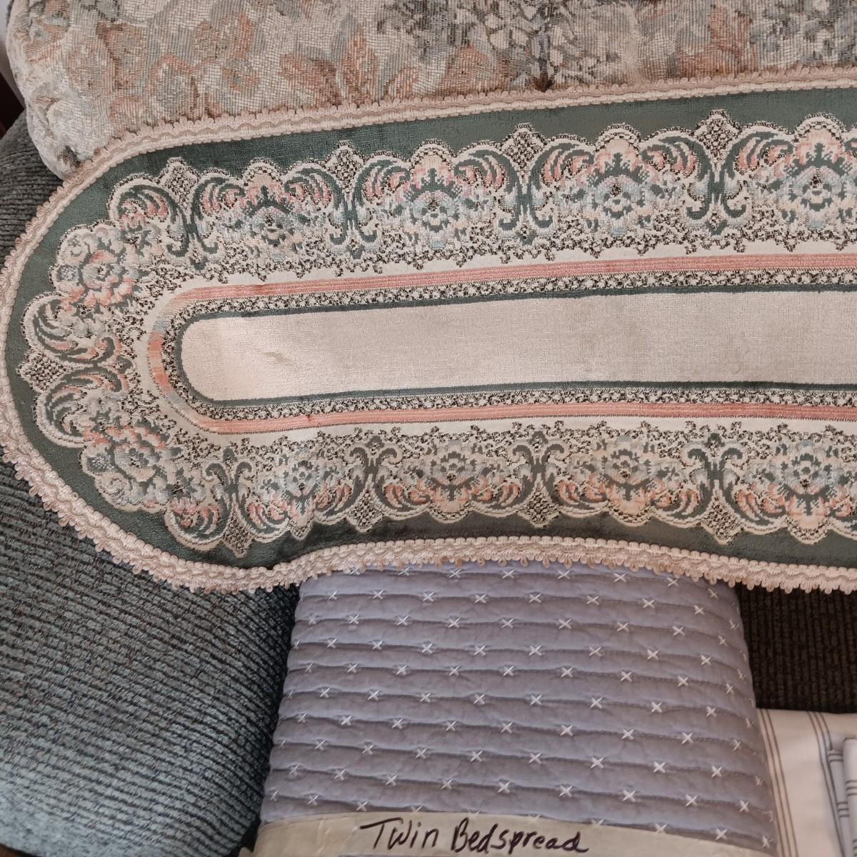 TWIIN SIZE BEDSPREAD AND A TABLE RUNNER
