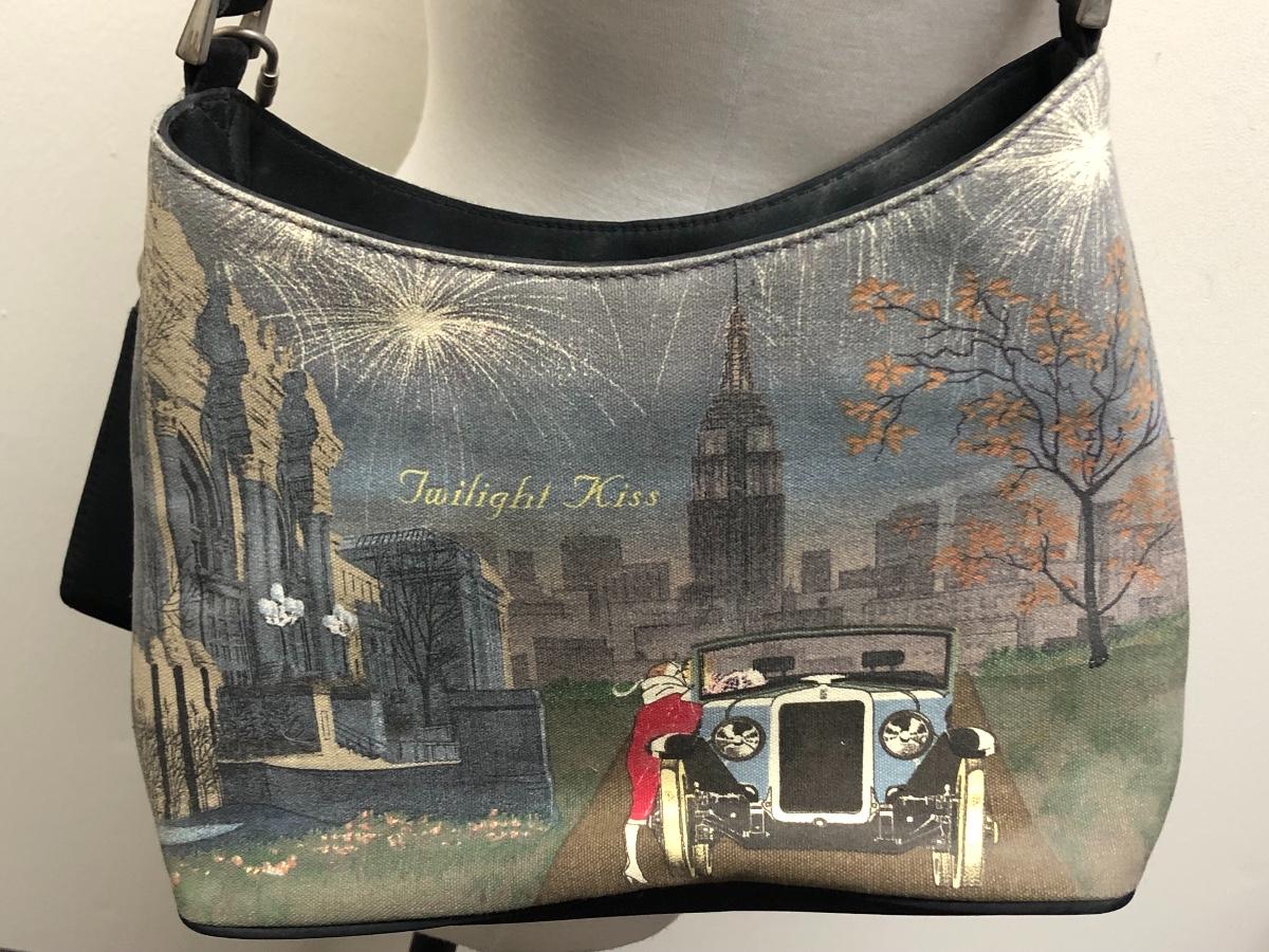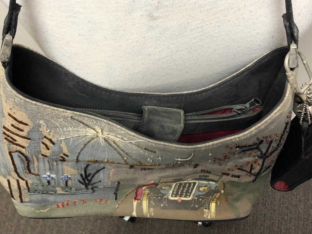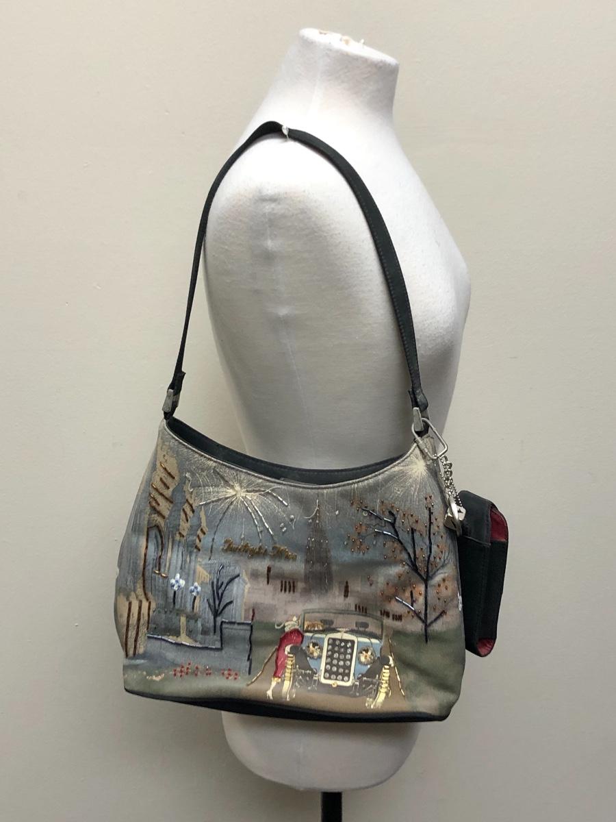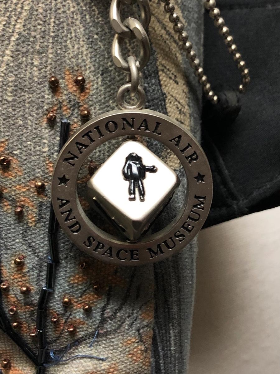 Purse is in great condition. It comes with a national air and space museum keychain. The inside of the purse has a zipper in the middle separating the two sides. The purse is a decent size and can fit a lot of items.