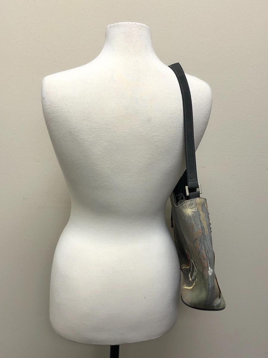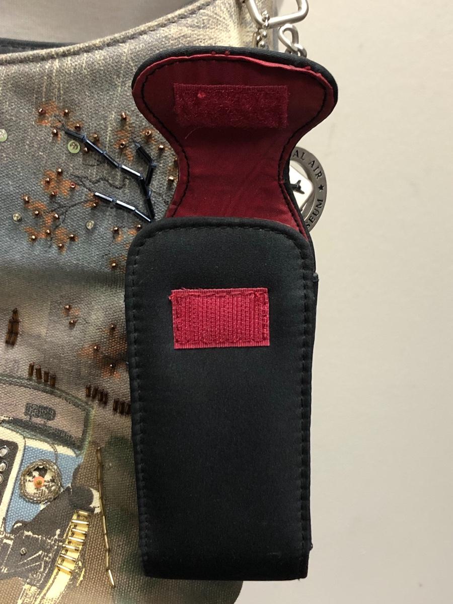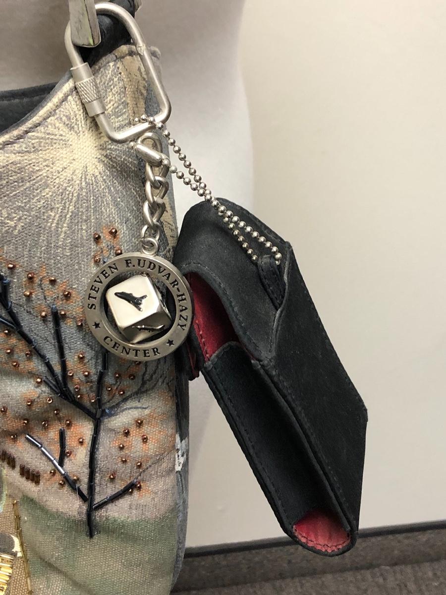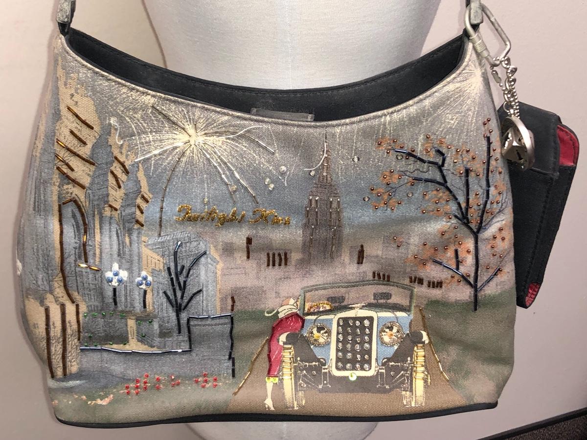 Purse is in great condition. It comes with a national air and space museum keychain. The inside of the purse has a zipper in the middle separating the two sides. The purse is a decent size and can fit a lot of items.
