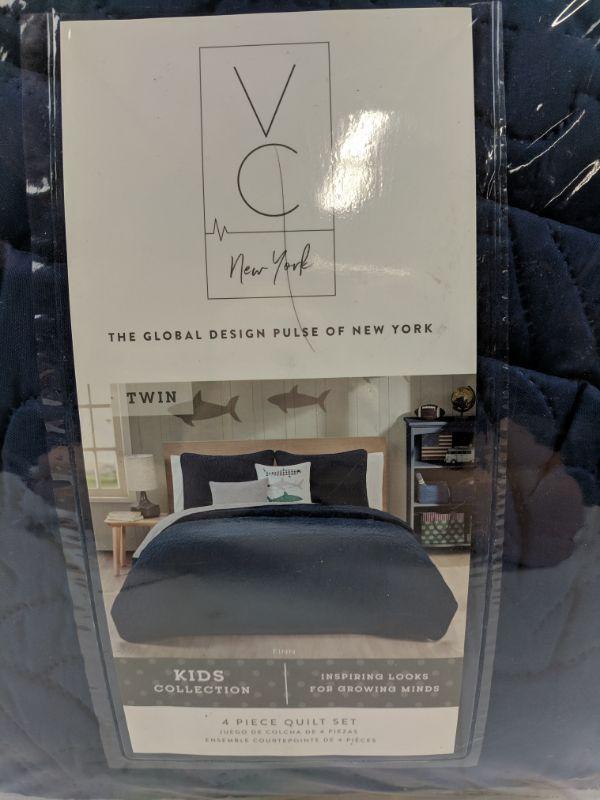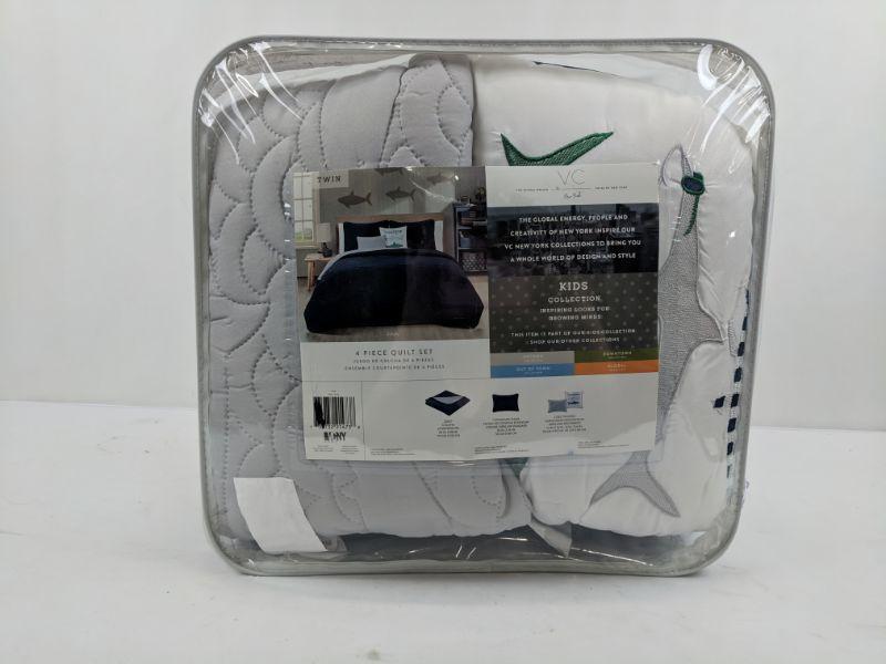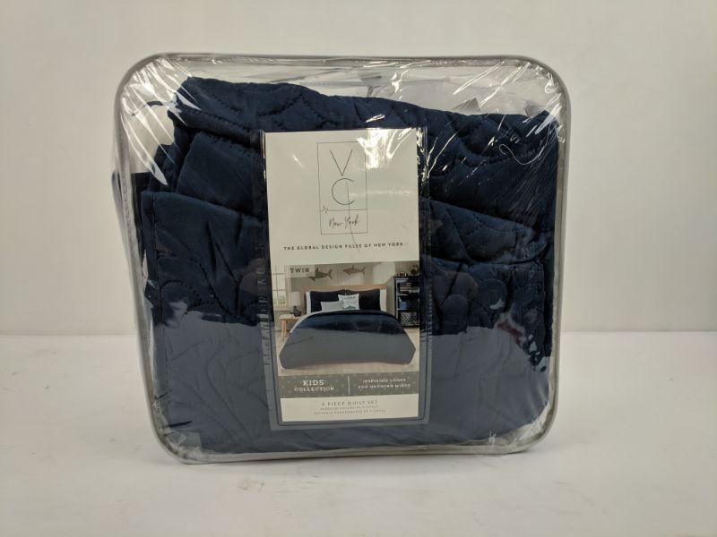Twin 4pc Quilt Set, Finn, Blue, 1 Quilt/1 Sham/2 Dec Pillows - New