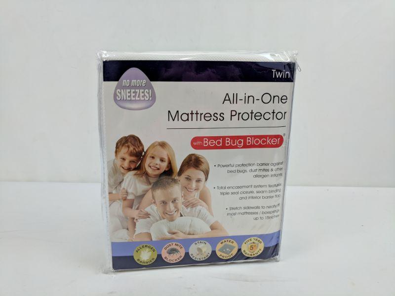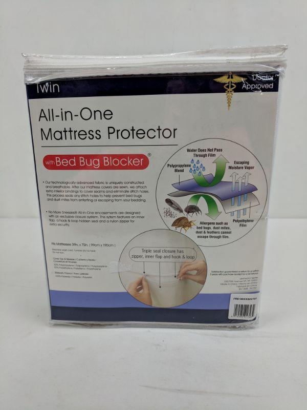 Twin All-in-One Mattress Protector, w/Bed Bug Blocker - New