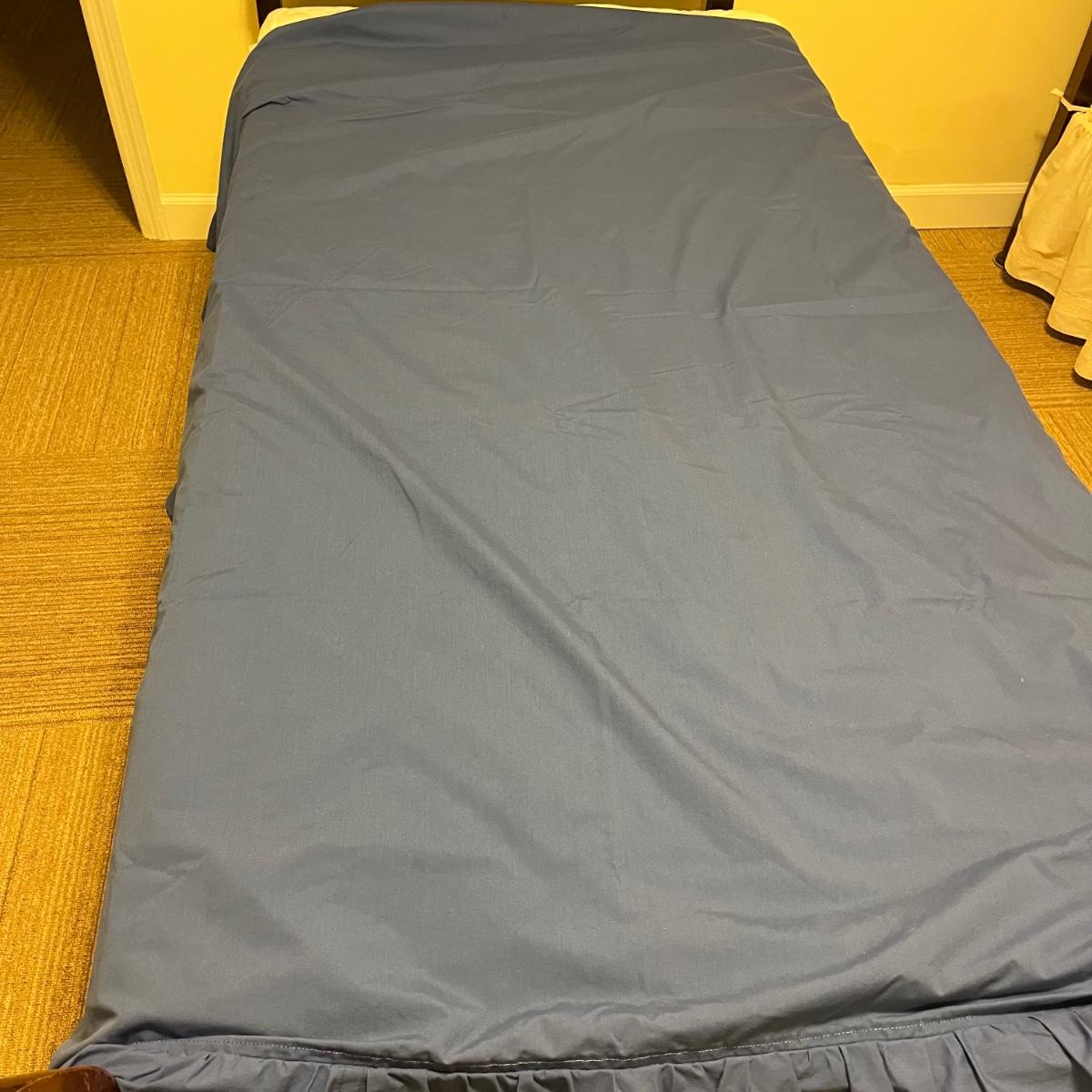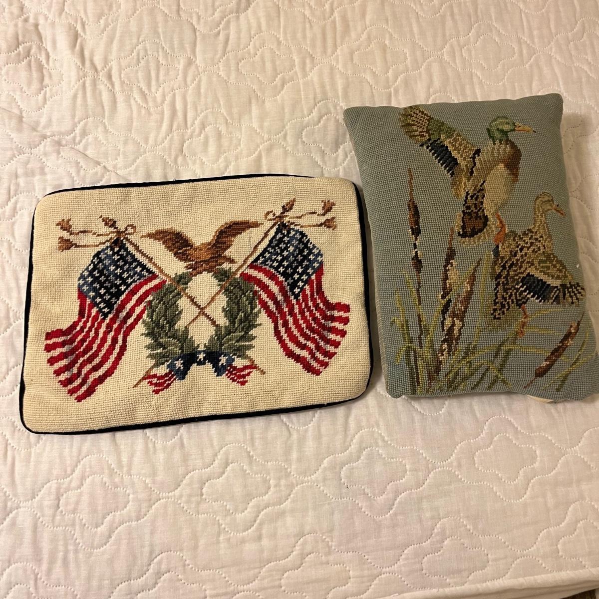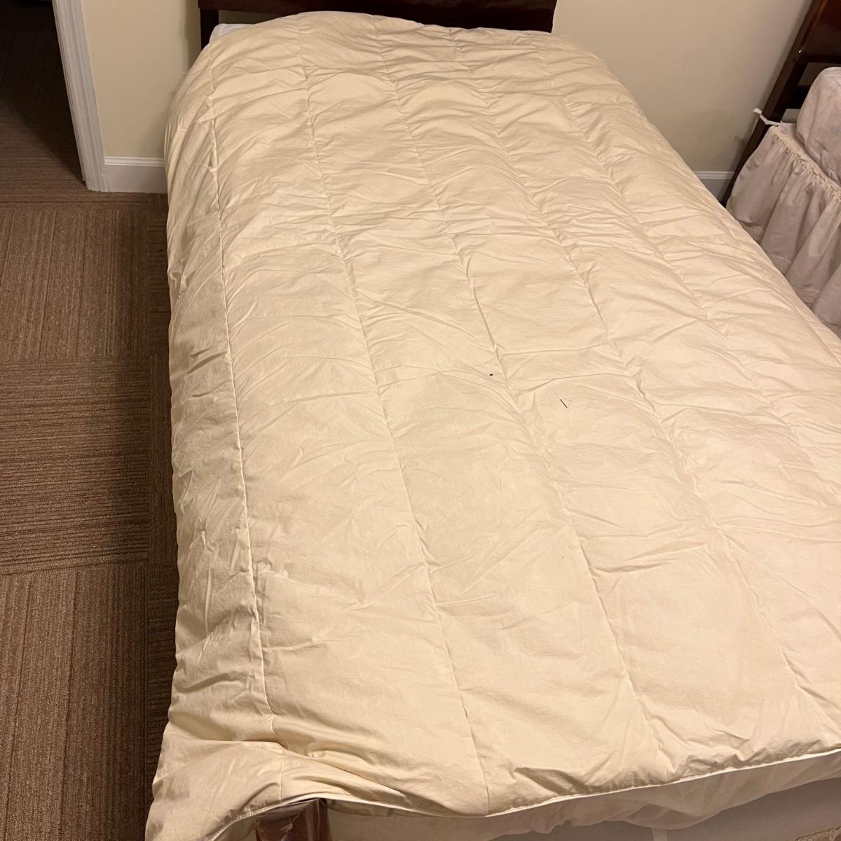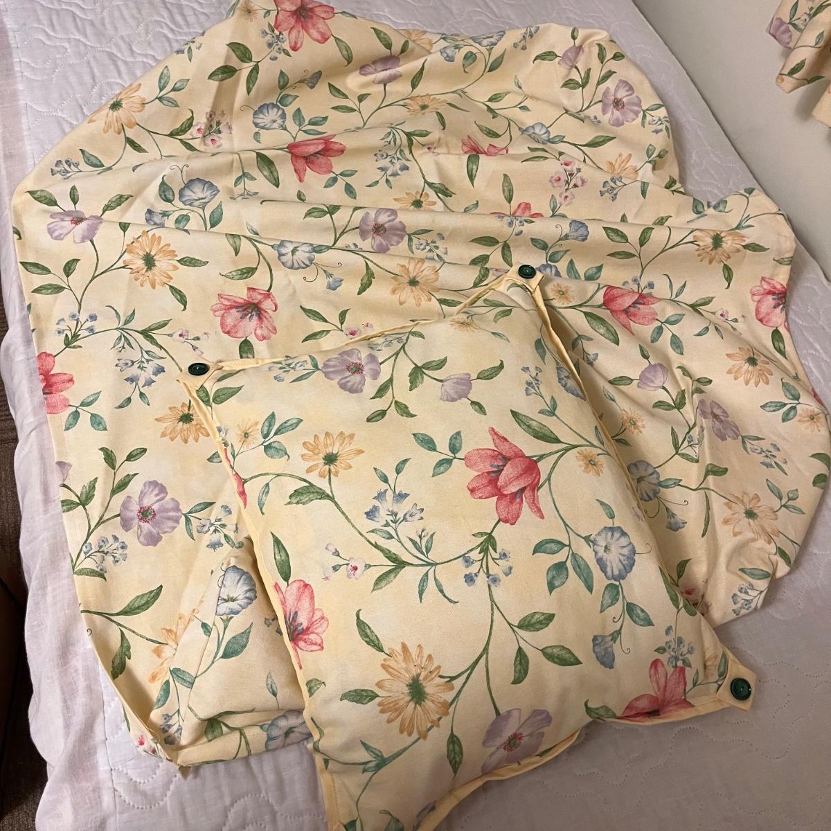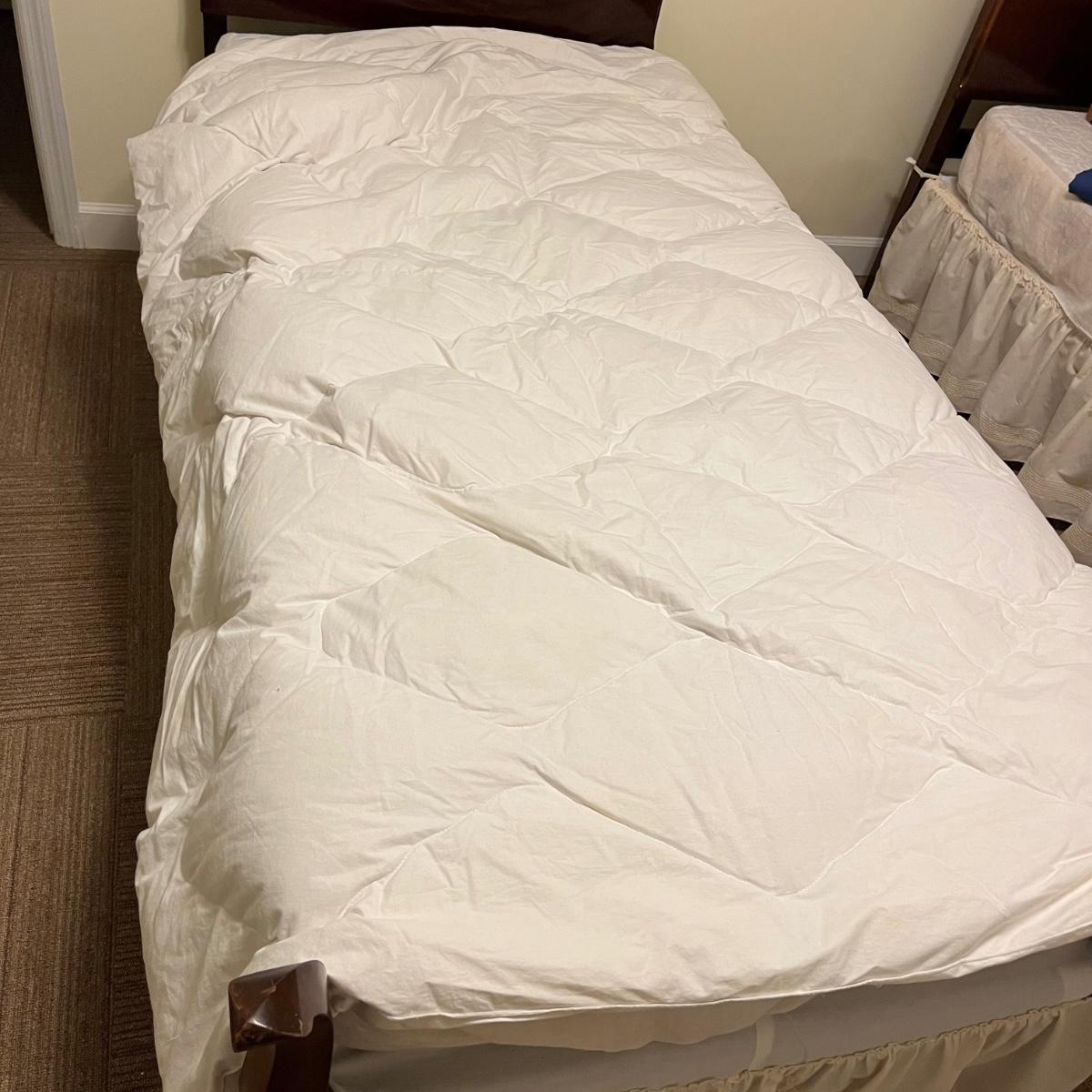 Lot includes two twin duvets, two twin duvet covers, two flat and two fitted twin sheets, embroidered pillow and embroidered pillow cover and two fabric pillows.