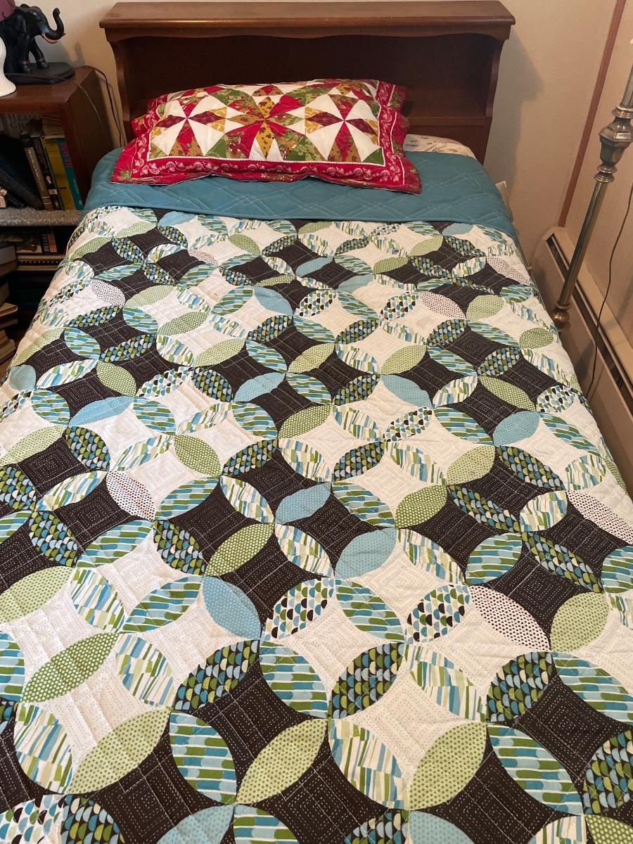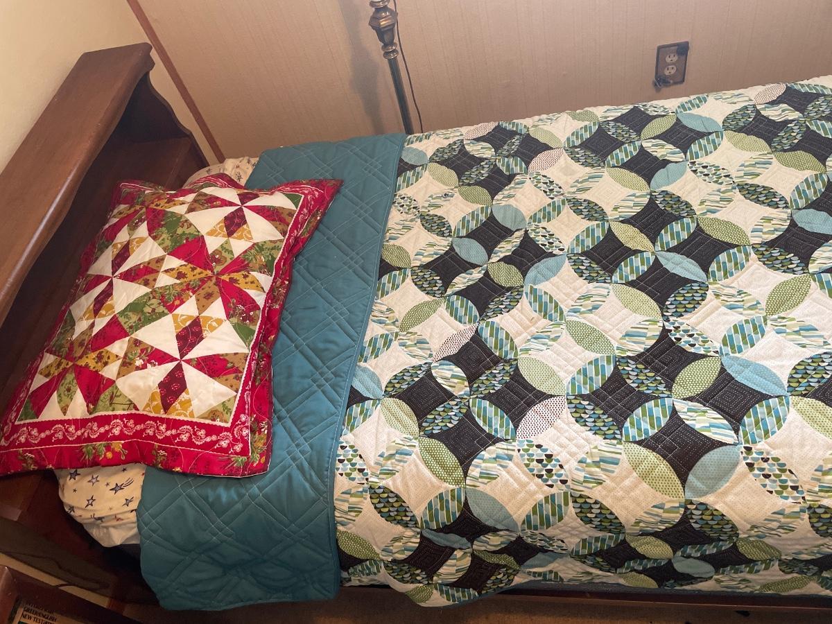 Twin bed with wood headboard