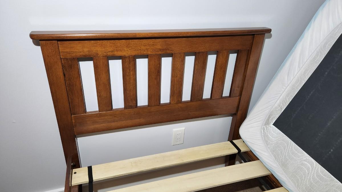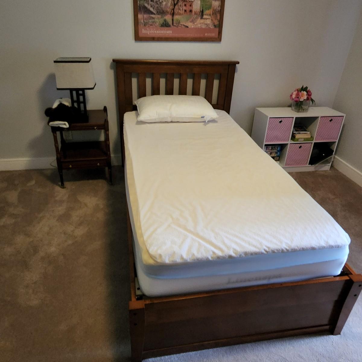 Clean Twin bed Wood Frame with a Linenspa Mattress