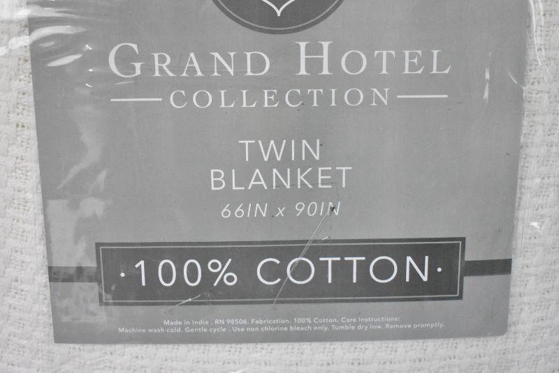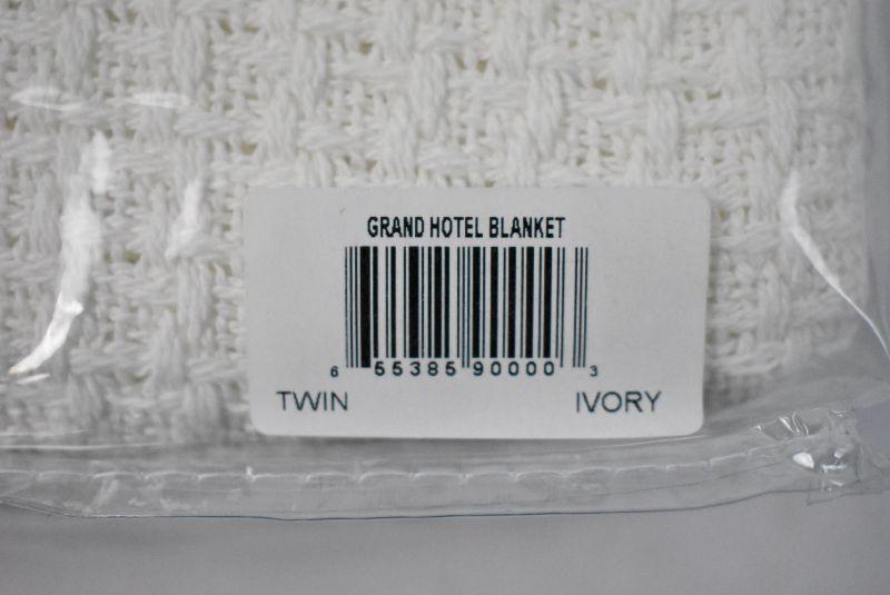 Twin Blanket, White Cotton, by "Grand Hotel Collection" Ivory - New