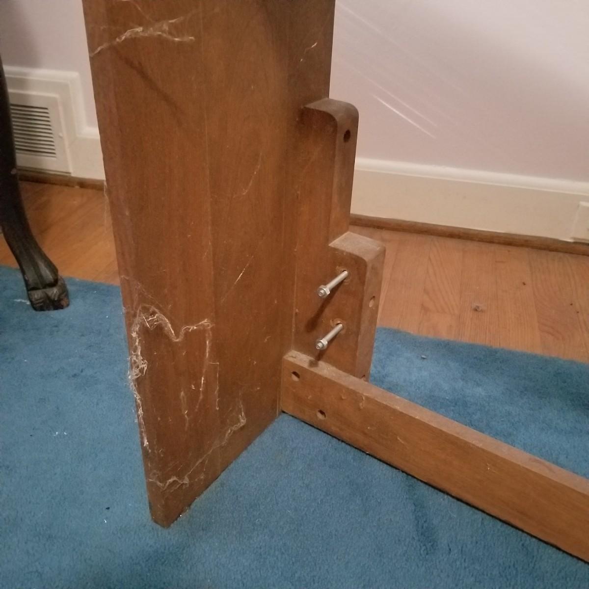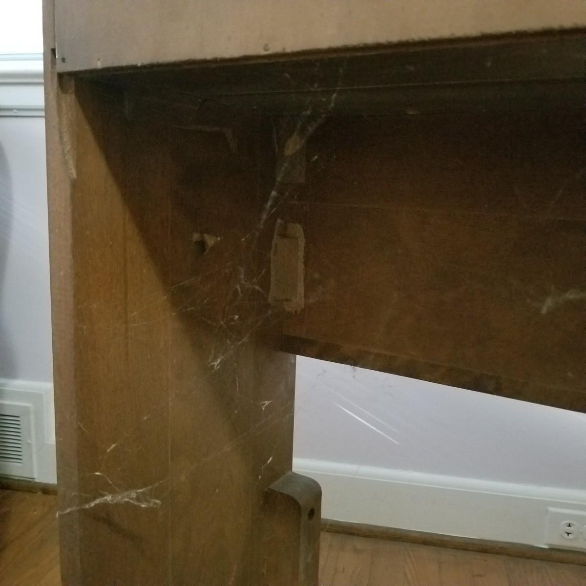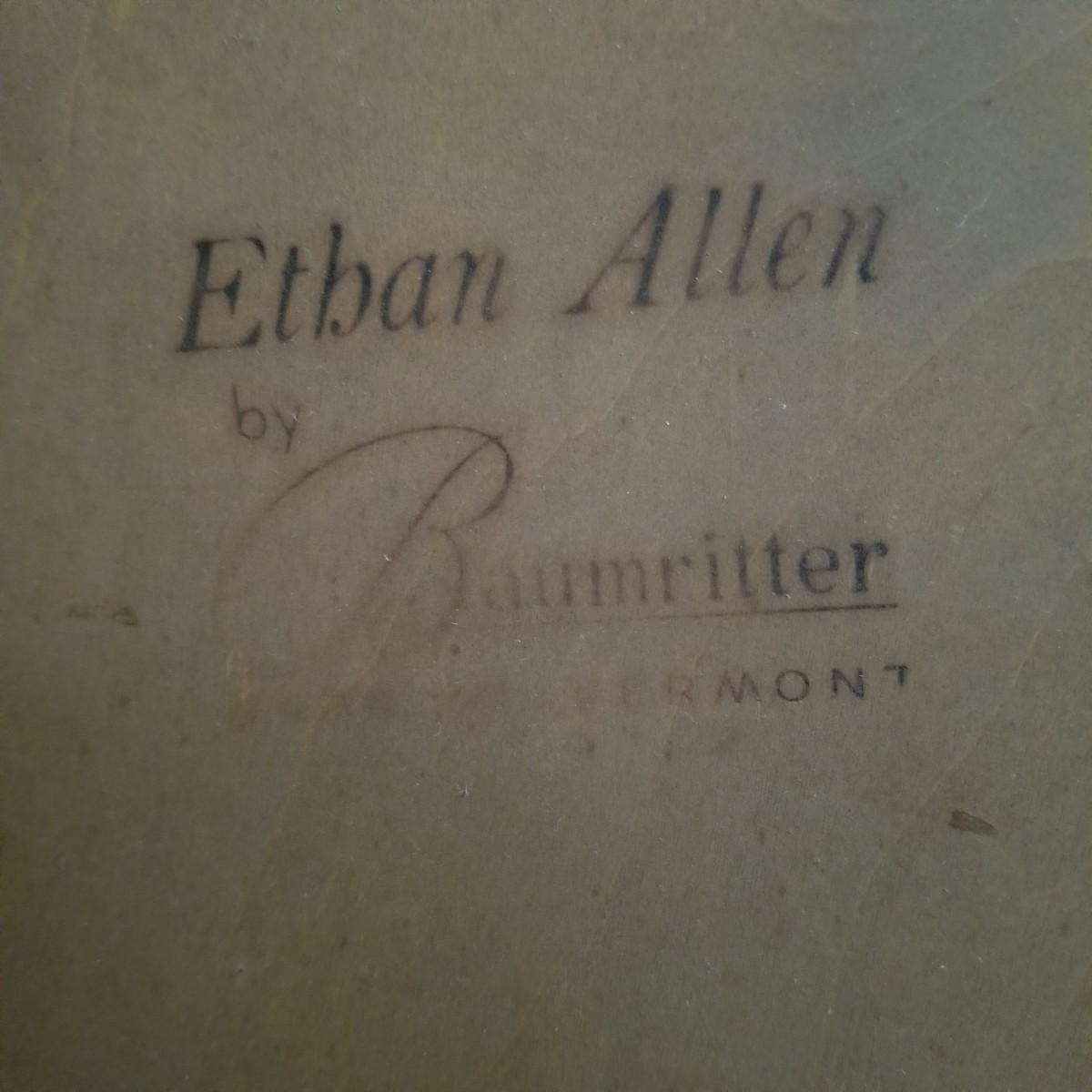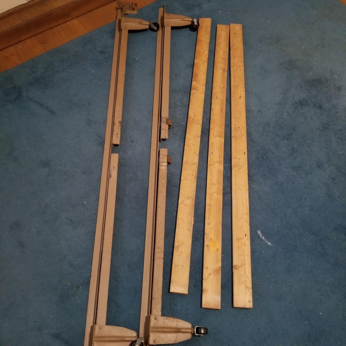A nice twin size Ethan Allen brand headboard with bookcase storage and sliding spindle doors. Solid wood. Also includes bed slats and an adjustable metal frame with wheels. Headboard is 58" x 10" x 39" and in good condition. Local pickup only.