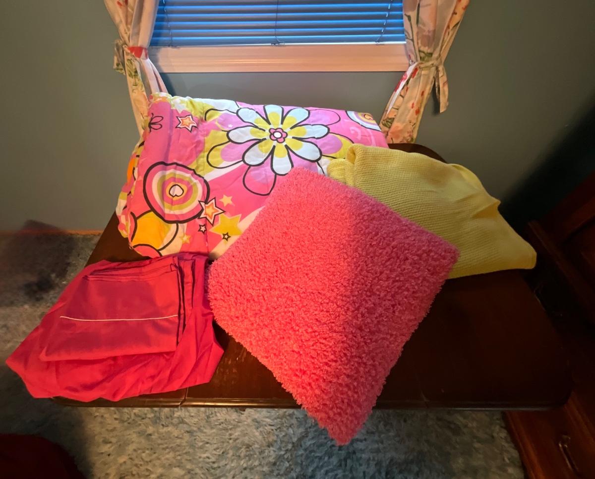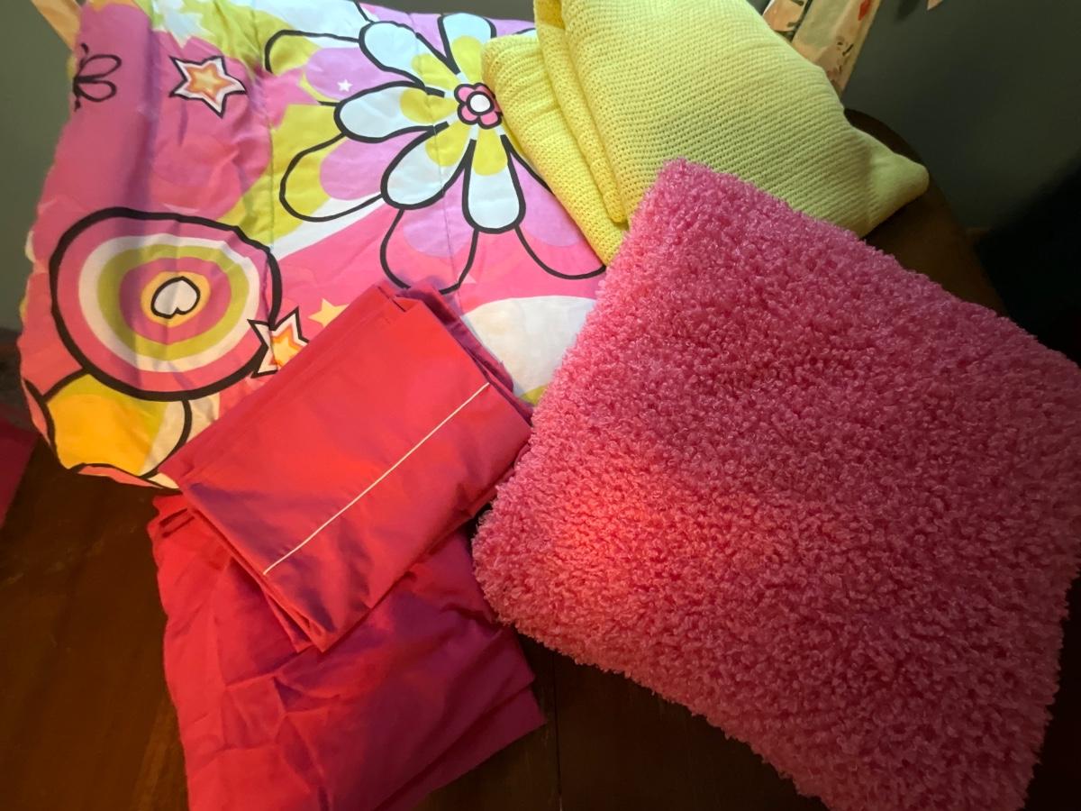 Twin Comforter, blanket, pillow, and fitted sheet with pillow cases